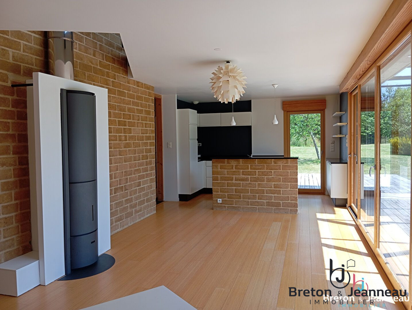 Sortie de MAYENNE, venez découvrir dans un cadre idyllique et tranquille sans vis-à-vis, cette maison contemporaine de 2010. Cette maison a tous les atouts pour allier un environnement paisible et des gains d'énergies (bioclimatique, biosourcée). Elle vo...