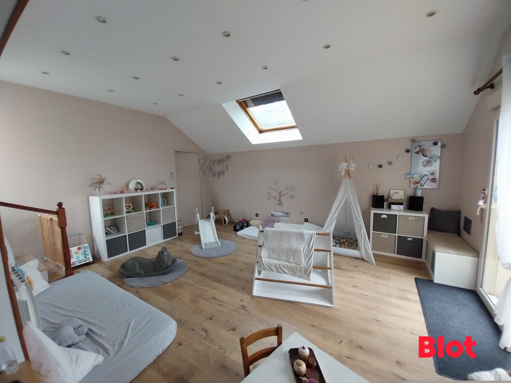Dans une rue au calme, venez visiter cette demeure qui dès son entrée vous surprendra par sa hauteur sous plafond avec poutres apparentes.