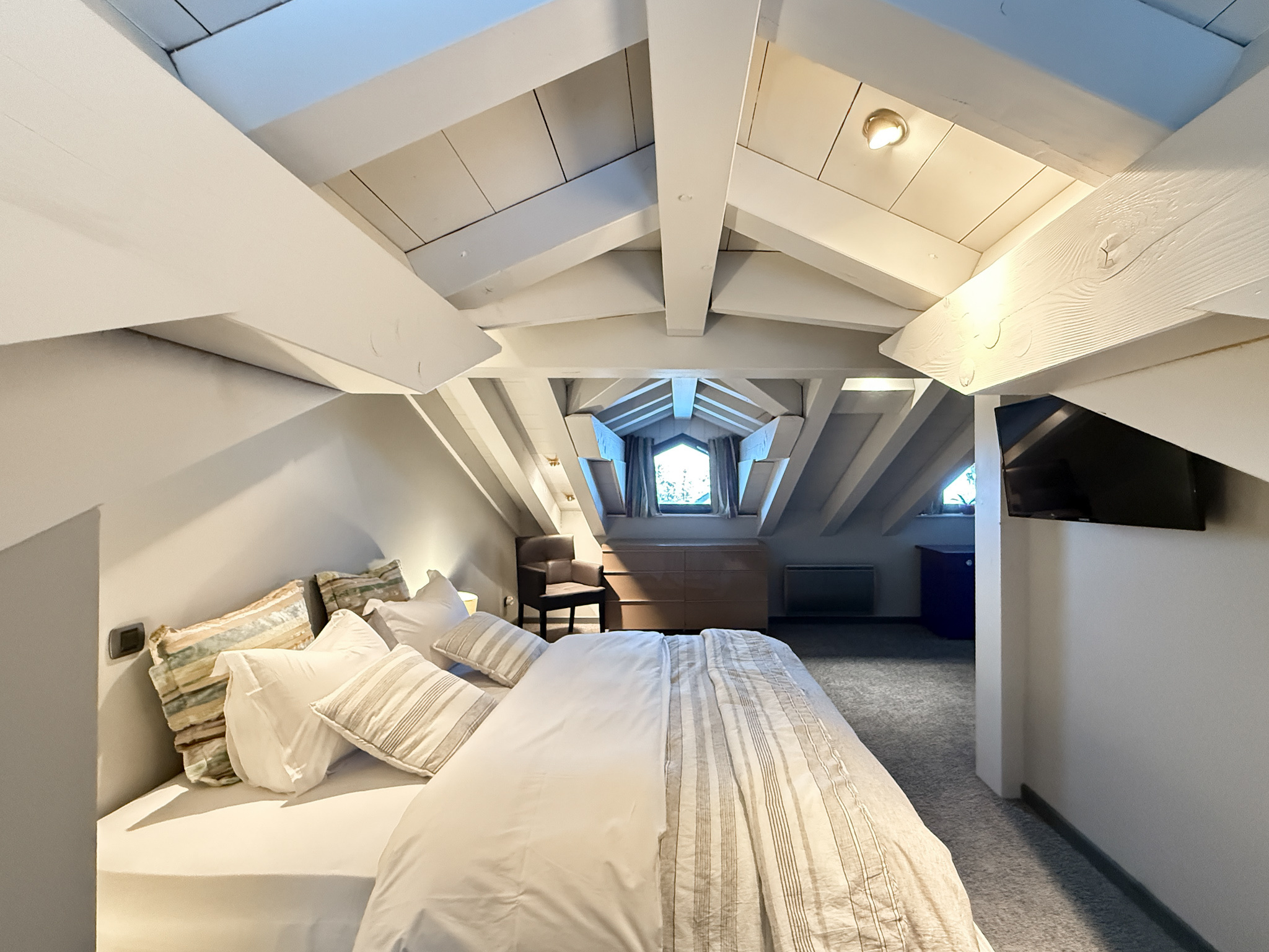 A10823 - Ce chalet indépendant de 4 étages d'environ 415m2 comprend 14 chambres et 13 salles de bains/douches ainsi qu'un salon, une salle à manger et une cuisine. Au rez-de-chaussée il y a également un hall d'entrée, un ski room, une buanderie,...