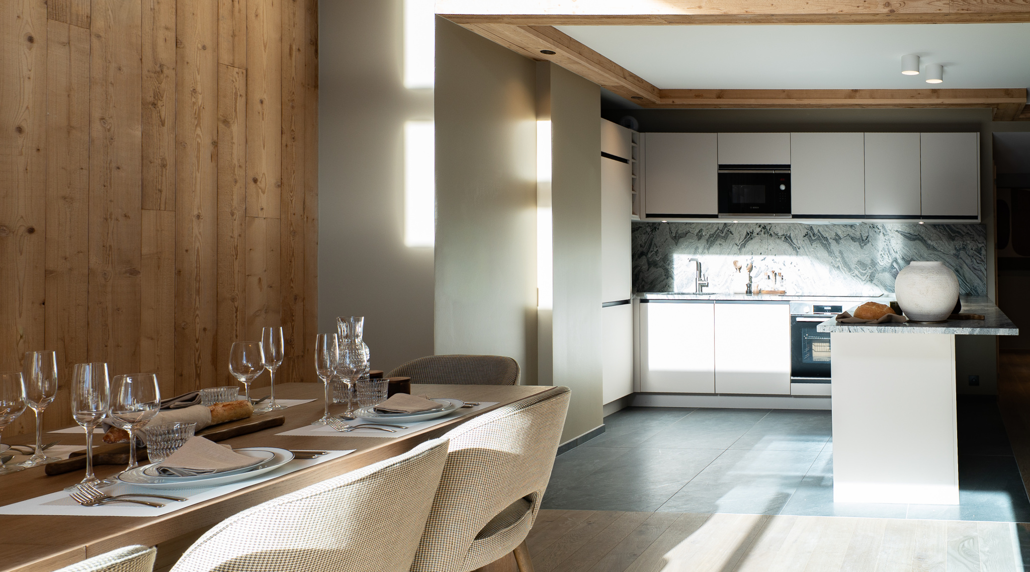 A39654SM73 - Chalet de 4 chambres (146 m², 91 m² habitables) près du Praz, Courchevel, entièrement reconstruit d'un côté tout en conservant son charme d'origine de l'autre.