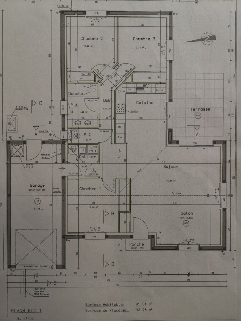 Maison neuve de plain-pied d'environ 91m² habitables composée d'une pièce de vie avec cuisine aménagée donnant sur terrasse exposée sud, dégagement, 3 chambres avec placards, buanderie, salle d'eau , wc, garage attenant de 21m² et une place de ...