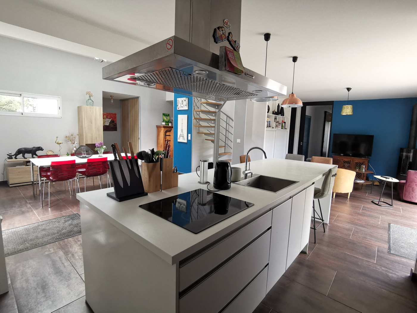 La maison se compose d'une entrée, une cuisine ouverte aménagée et équipée, une vaste pièce de...
