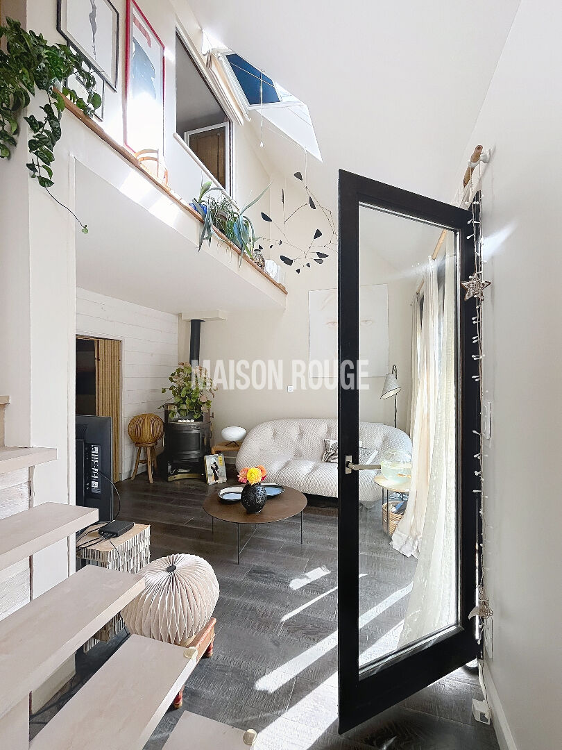Au rez de chaussée, la maison dispose d'un grand séjour cathédrale et une cuisine livrée aménagée et équipée donn...
