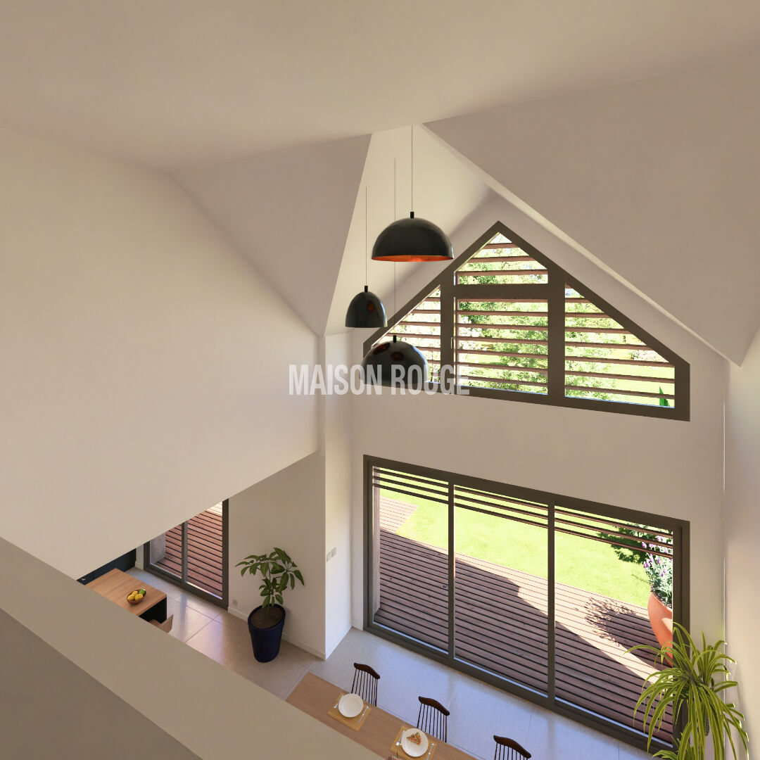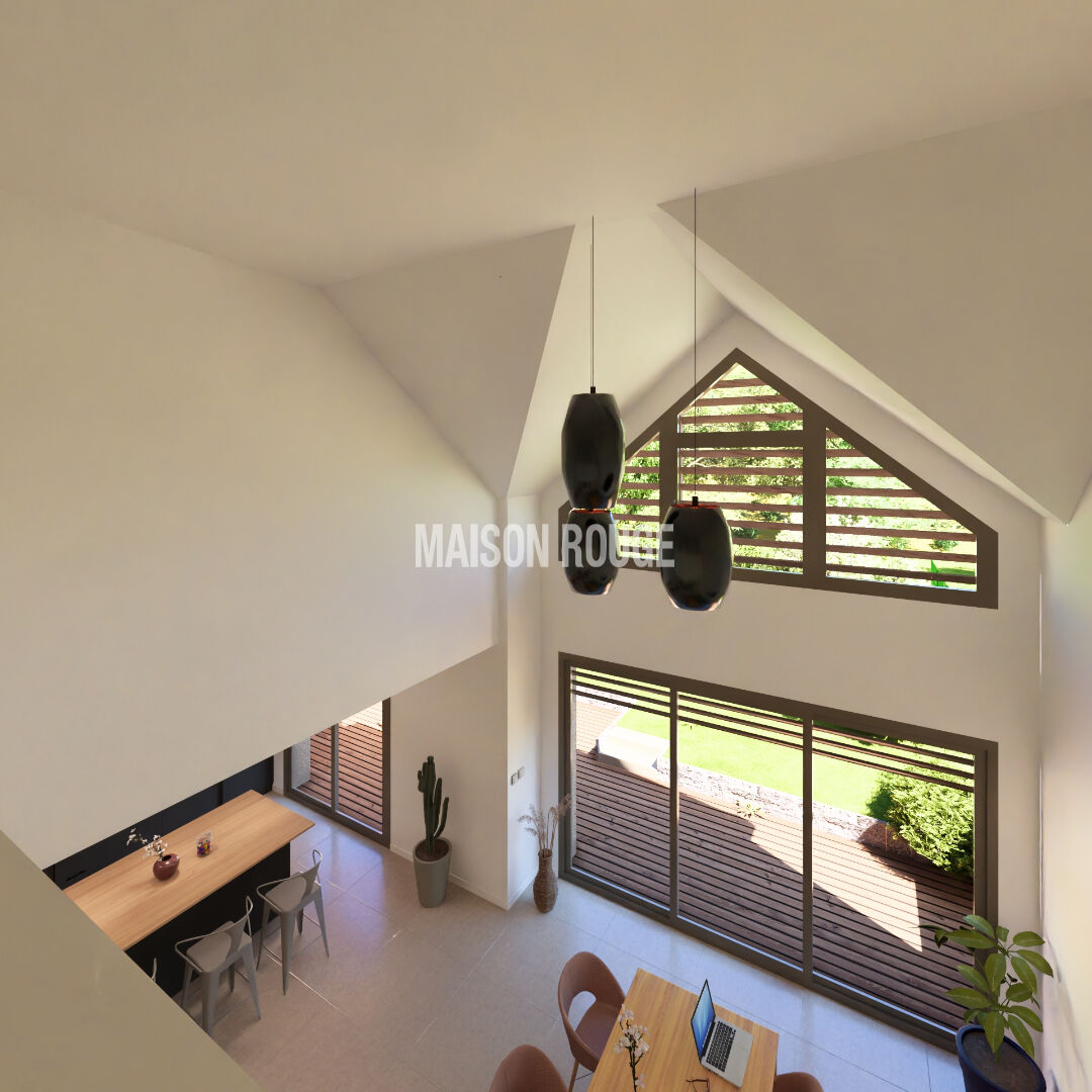 Au rez de chaussée, la maison bénéficie d'un grand séjour cathédrale plein Sud avec une cuisine livrée aménag...