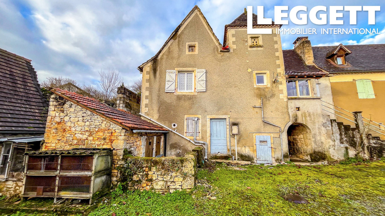 A42214NB46 - Située sur les hauteurs d'un village paisible, cette authentique maison mitoyenne avec pigeonnier bénéficie d'un cadre calme et d'une jolie vue dégagée sur le clocher et les toits du village.