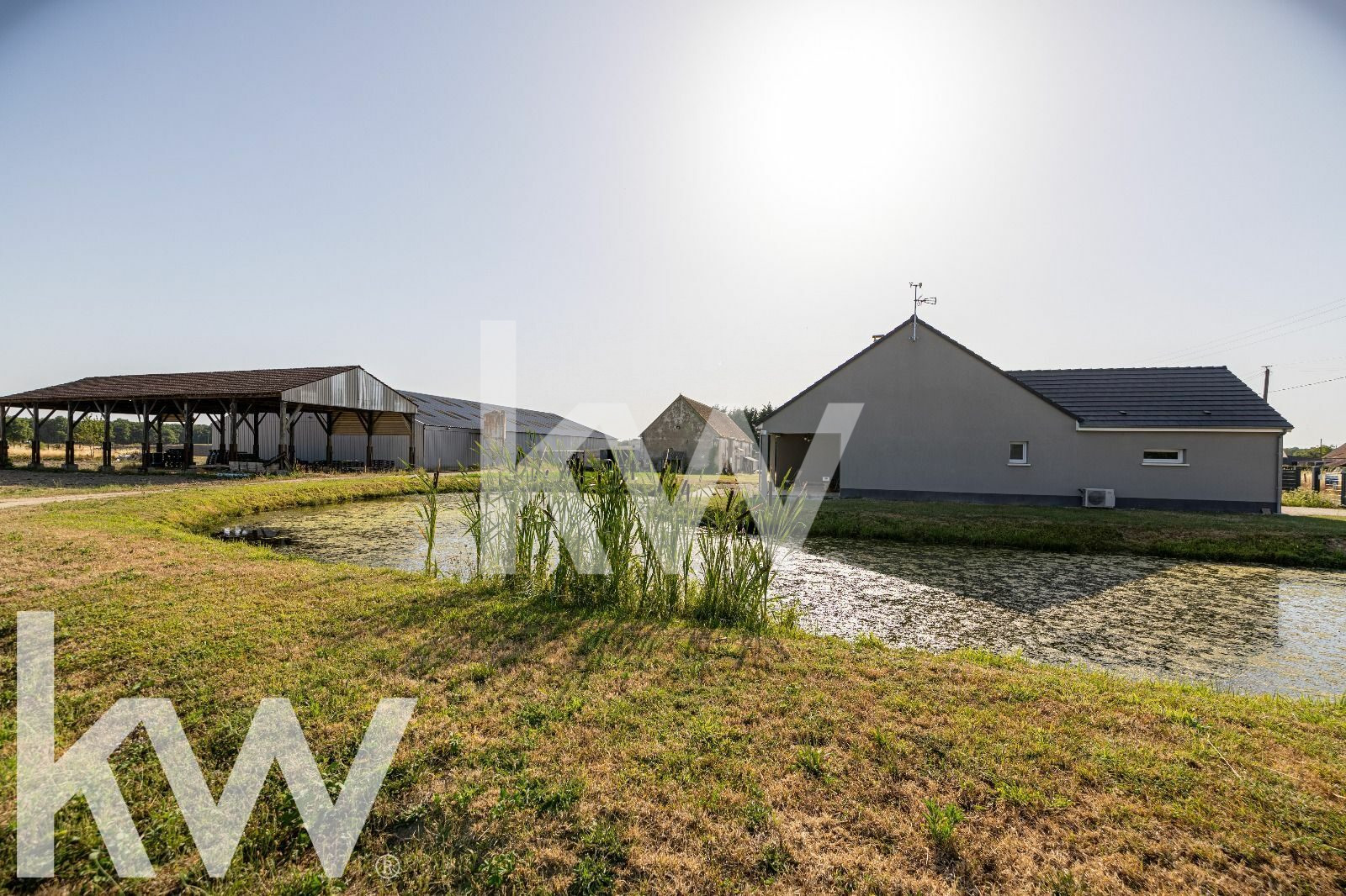 Cette propriété agricole offre un cadre de vie calme et spacieux, avec une maison indépendante très récente.