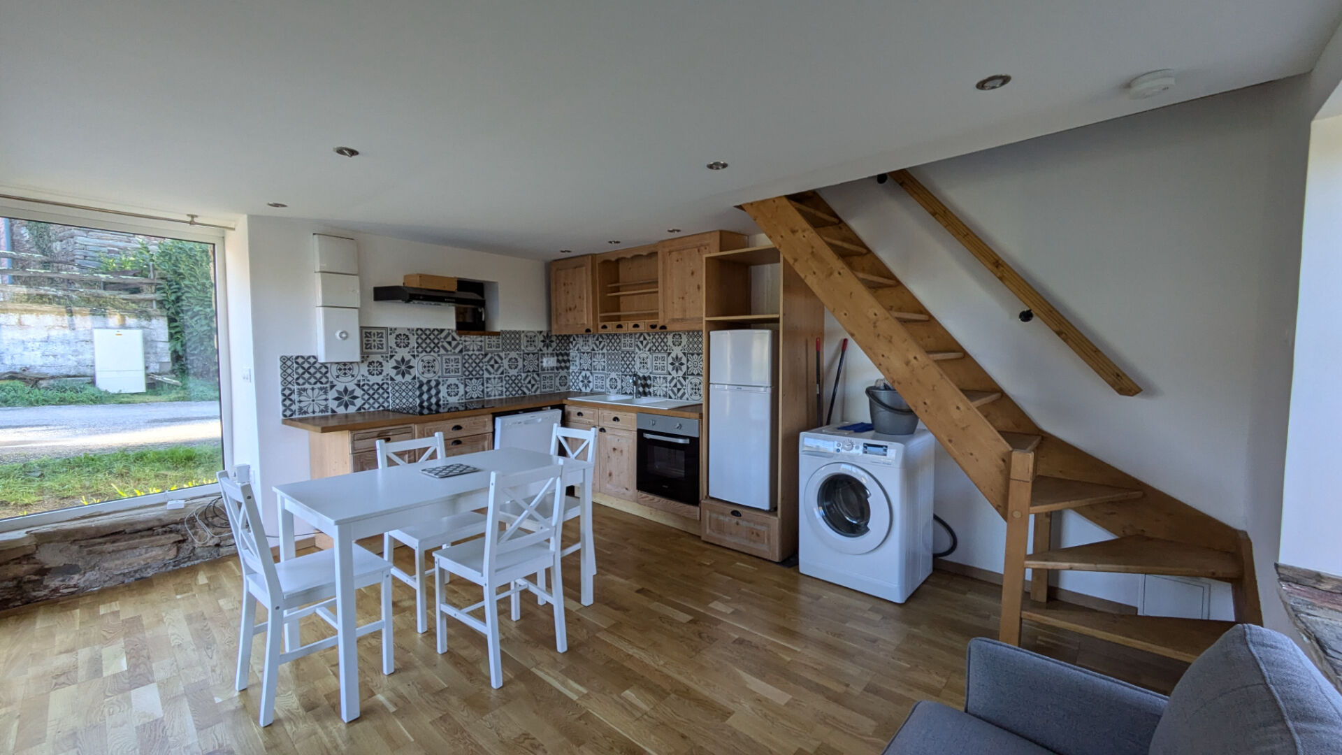 Au rez-de-chaussée : salon/séjour avec cheminée insert, cuisine ouverte aménagée. À l'étage : 2 chambres, salle d'eau avec w...