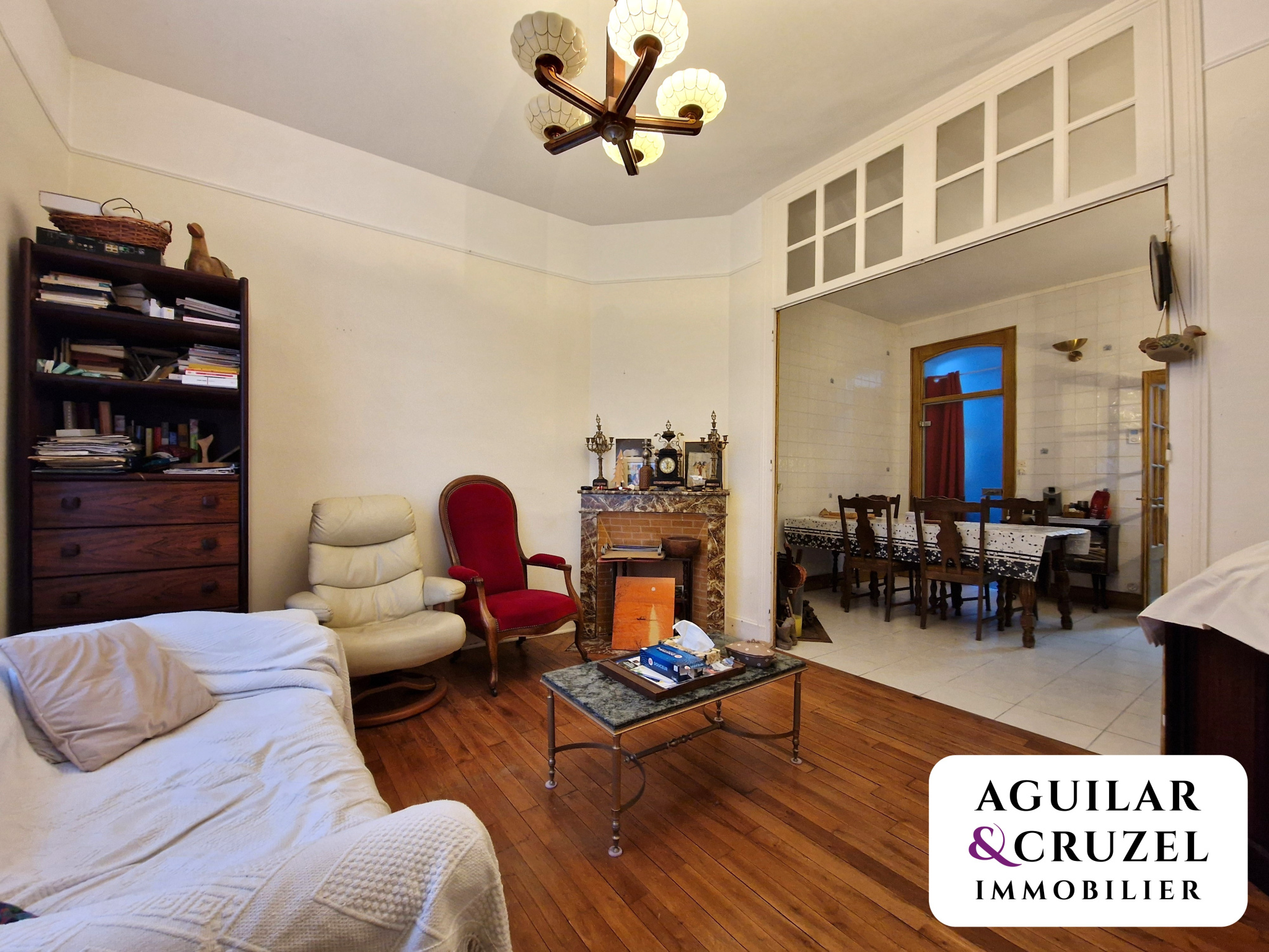 En rez de chaussée, vaste séjour lumineux avec cheminée et baies vitr...