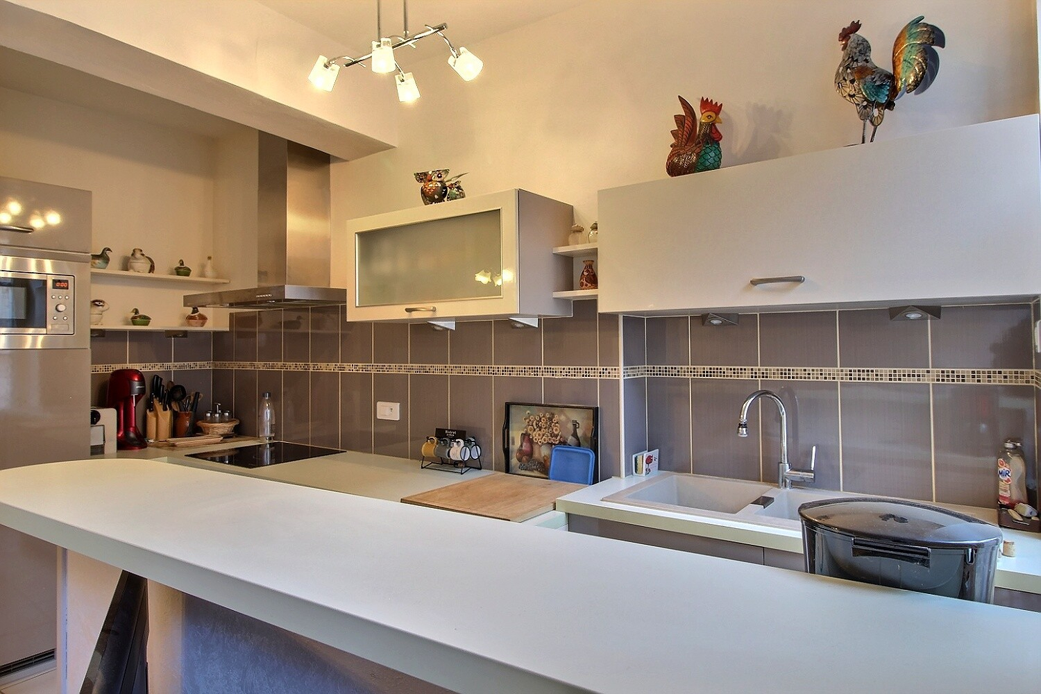 Au 2ème niveau: dégagement, salon/séjour ouvert sur cuisine équipée, 1 gr...