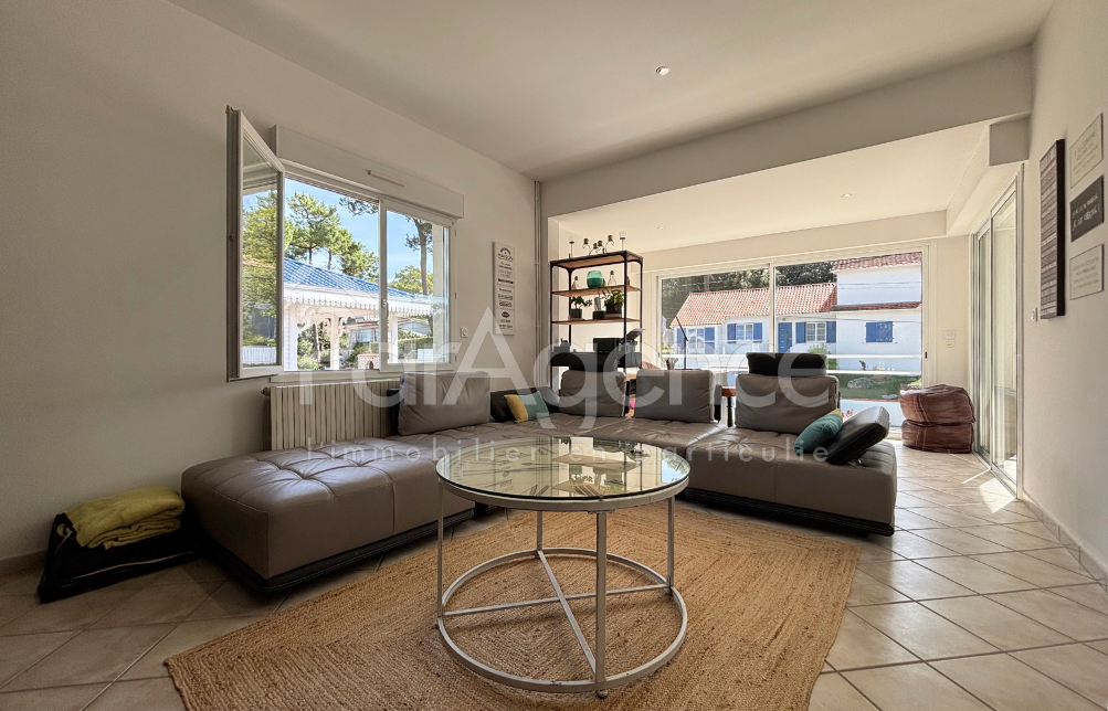 L'agence CHARTREUX IMMOBILIER vous présente, sur une belle parcelle arborée de plus de 1000m2, cette maison des années 70 qui offre de très beaux volumes et un emplacement privilégié arboré à seulement 500 mètres de la plage.