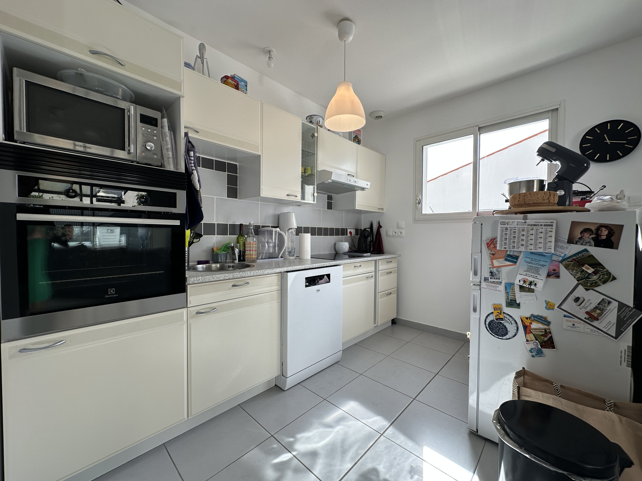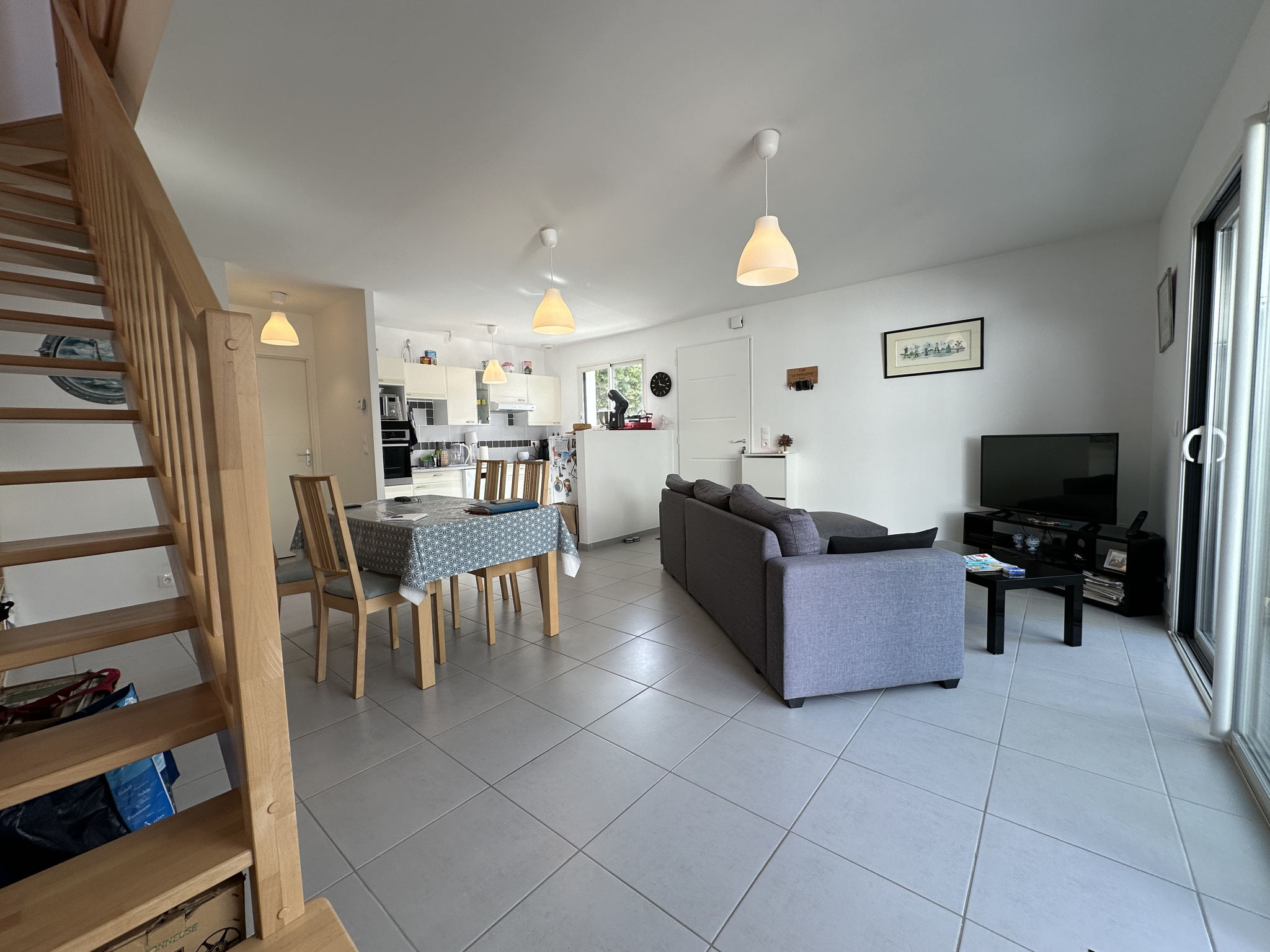 De plain pied spacieuse pièce de vie lumineuse, ouverte sur une cuisine fonctionnelle.