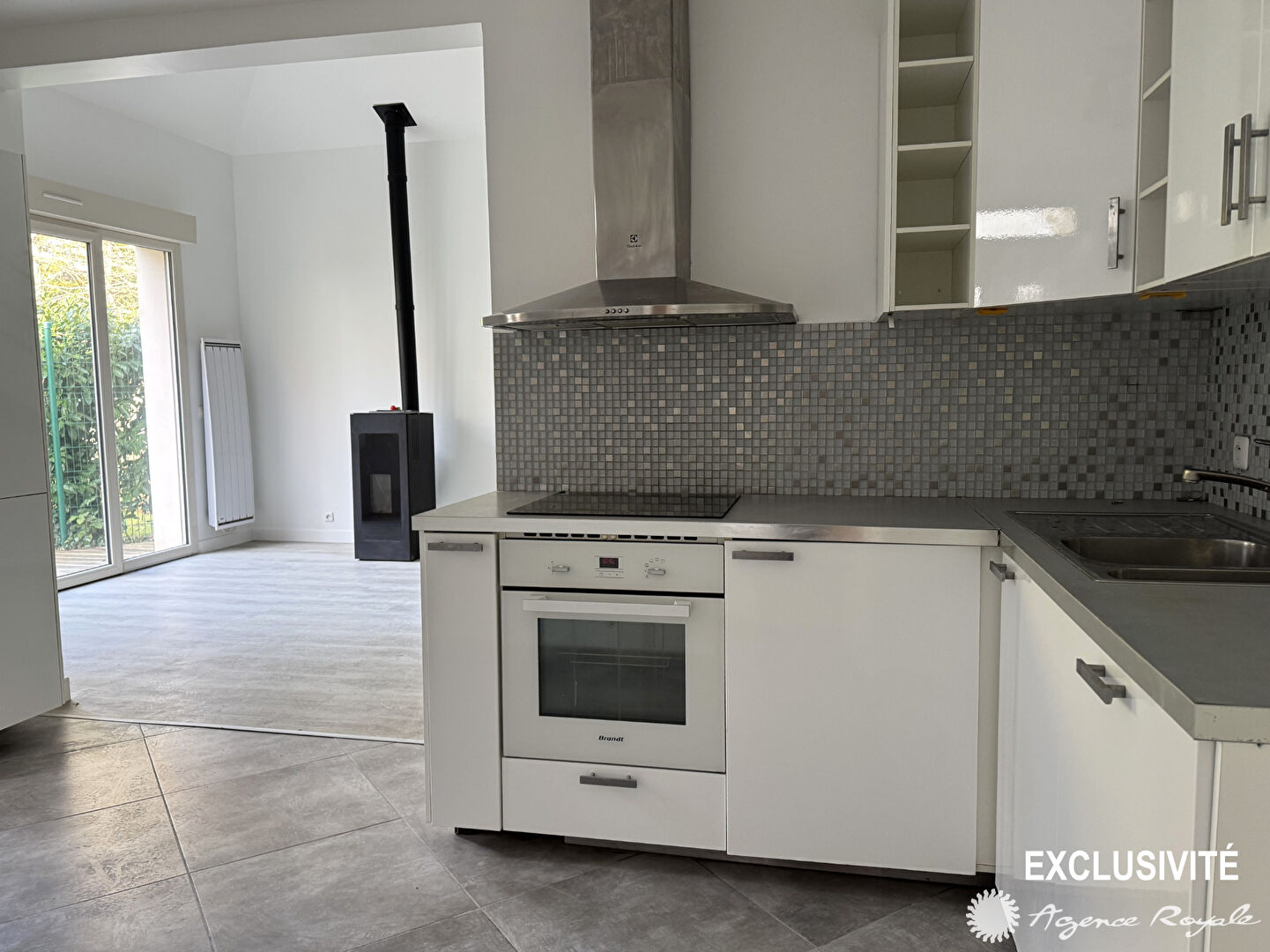 Maison de 135m² habitables sur 300m² de terrain : Entrée, Séjour de 36m² avec poêle à bois donnant sur Terrasse et Jardin, Cuisine américaine équipée avec Espace repas, 5 Chambre...