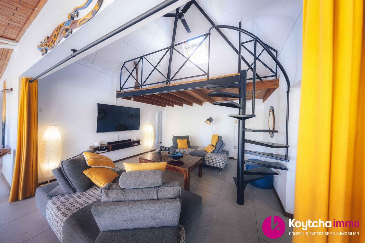 KOYTCHA Immo vous propose cette maison de ville T5 de standing avec vue océan, d'une surface habitable avec varangue de 141m², en rez-de-chaussée avec étage, dans une résidence sécurisée et idéalement placée.