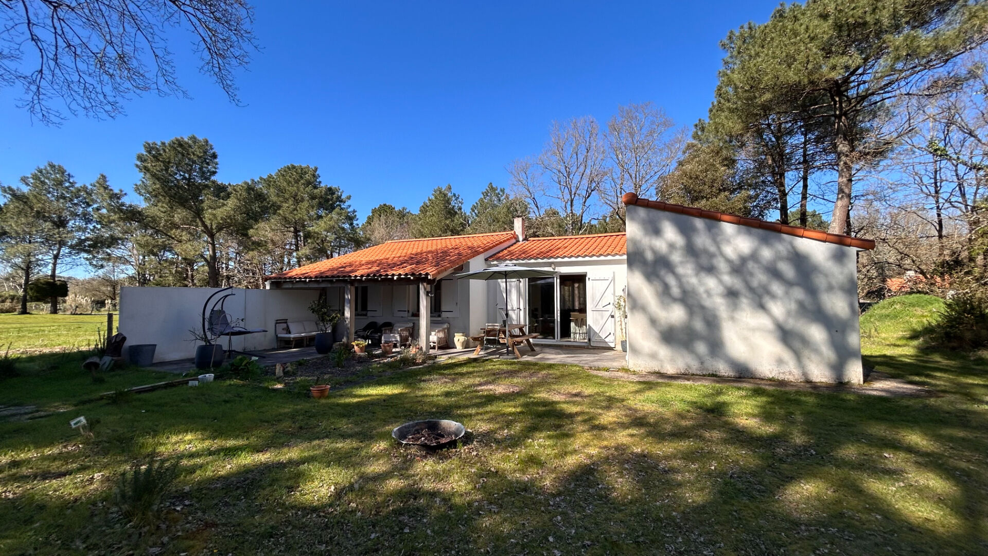 - Nichée dans un environnement boisé et à 10 minutes de la plage, charmante maison de plain-pied comprenant : un espace de vie avec cuisine aménagée et équipée, salon et une salle à manger. Nous retrouvons ensuite une salle d'eau avec wc et un dégagement ...