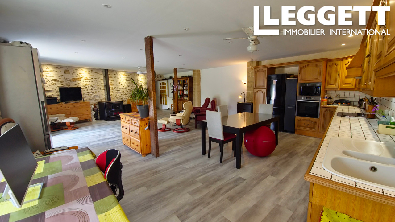 Au rez-de-chaussée : une grande pièce à vivre (cuisine, séjour/salon) d'environ 65 m² avec une cuisinière à bois...