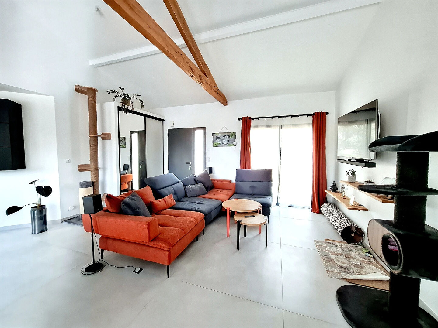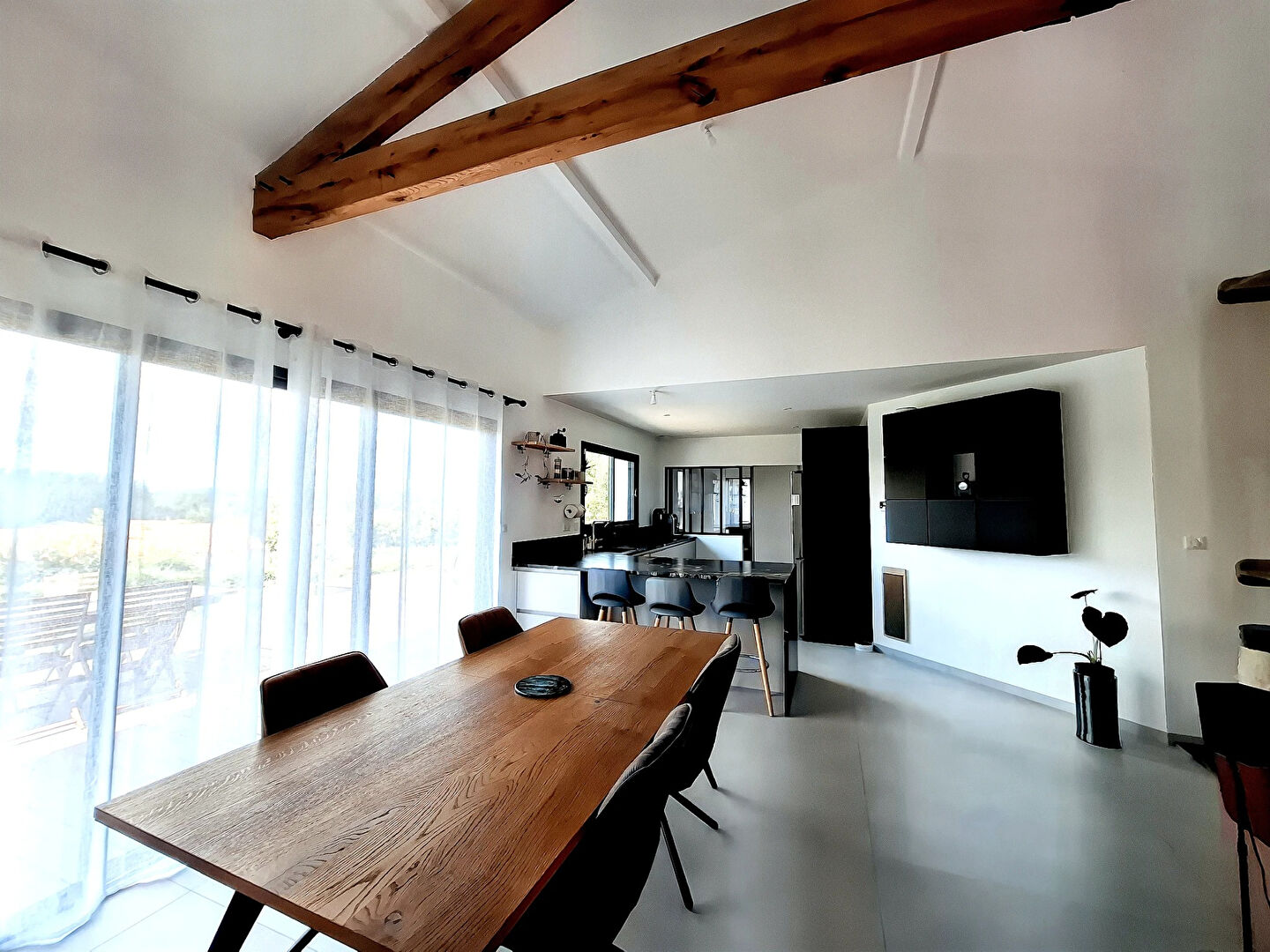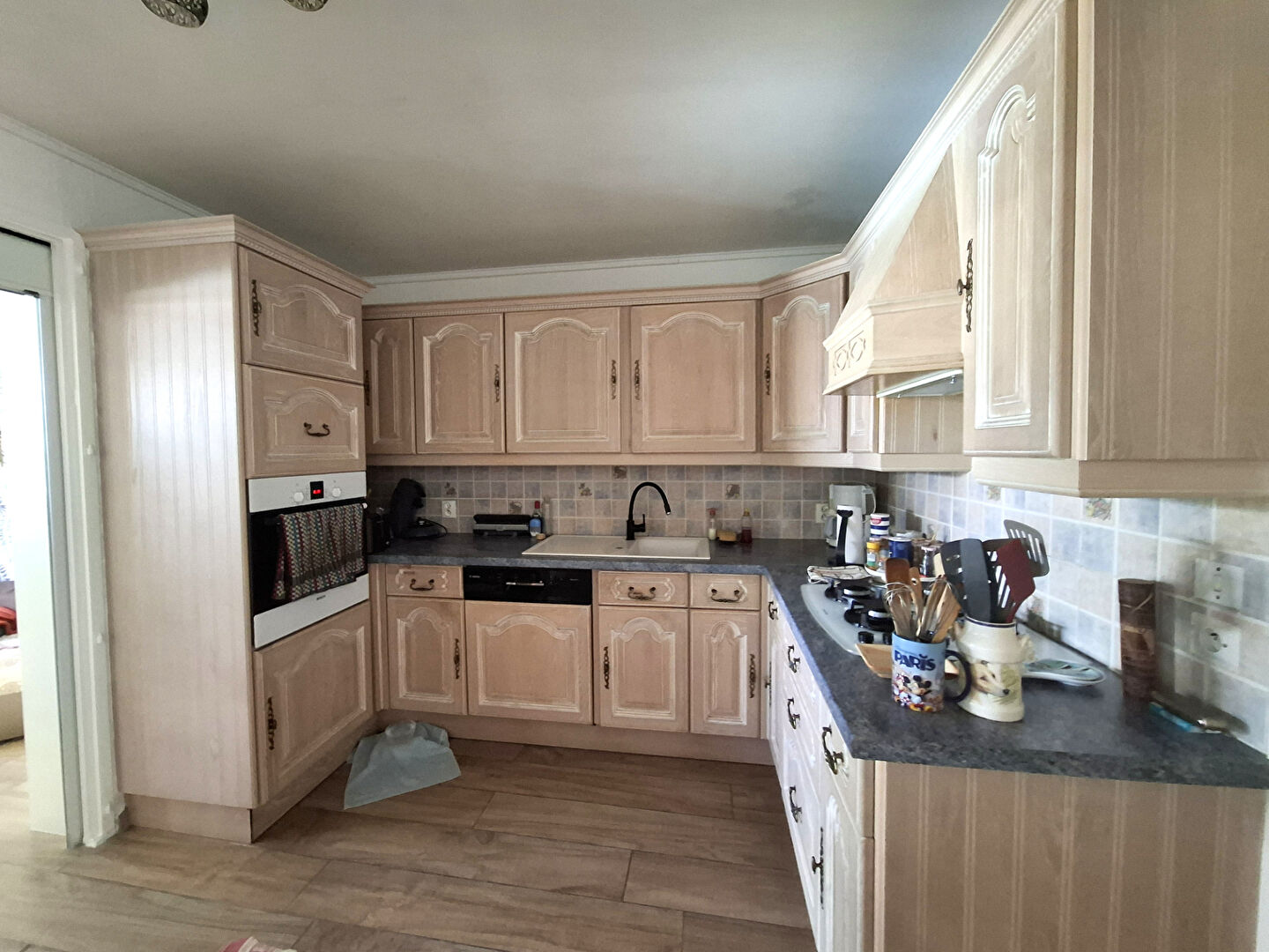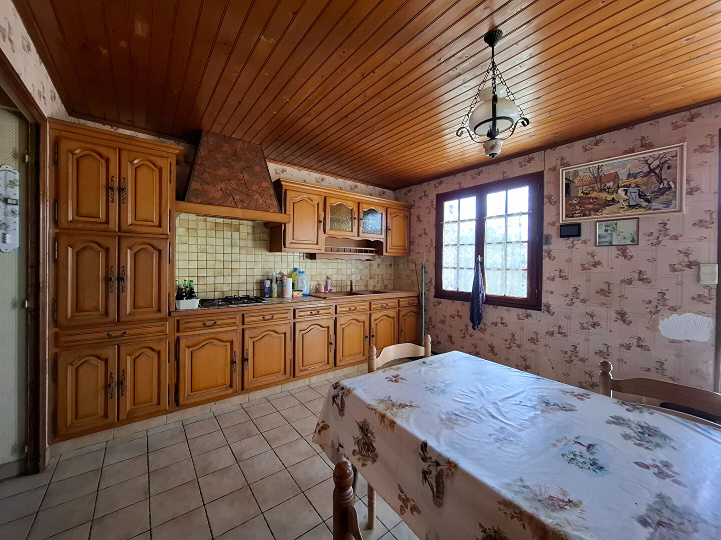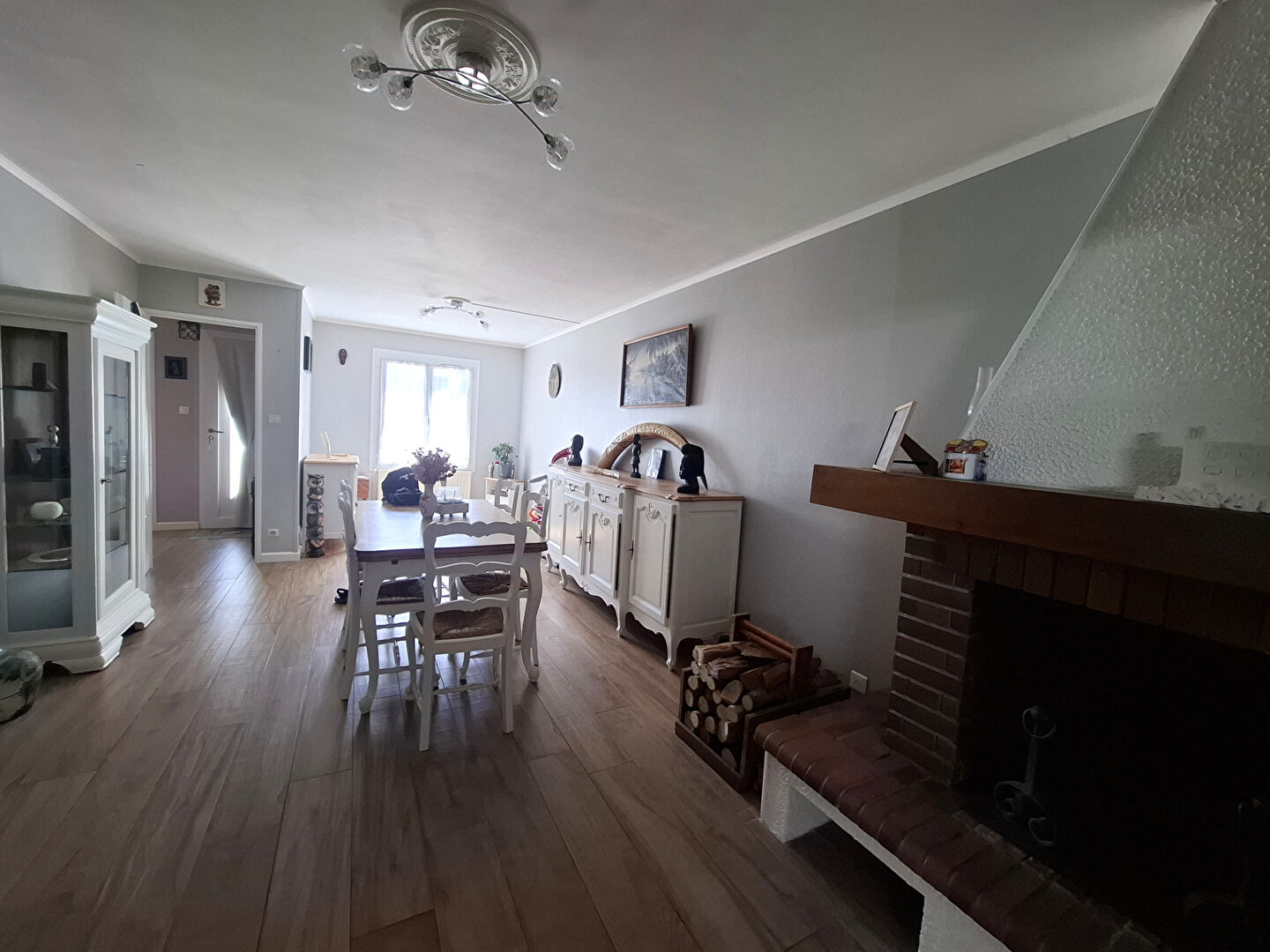 Maison de 130 m² habitables de plain-pied comprenant : entrée, cuisine équipée, cellier et débarras, salon/séjour avec insert, salle d'eau et 3 ch...