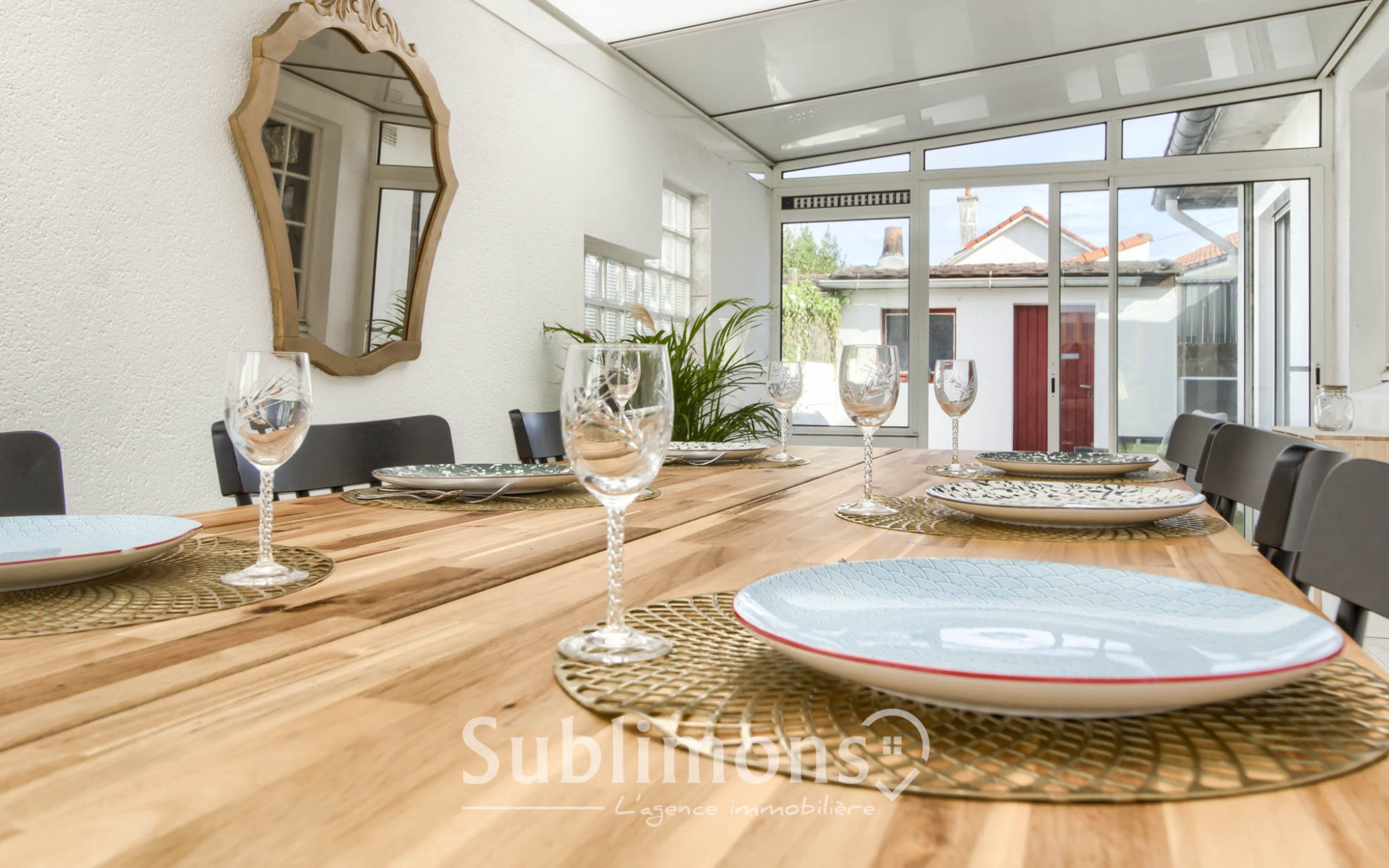 Baignée de lumière, la maison offre de généreux volumes : vaste salon, cuisine conviviale et salle à manger ouvrant sur une véranda c...