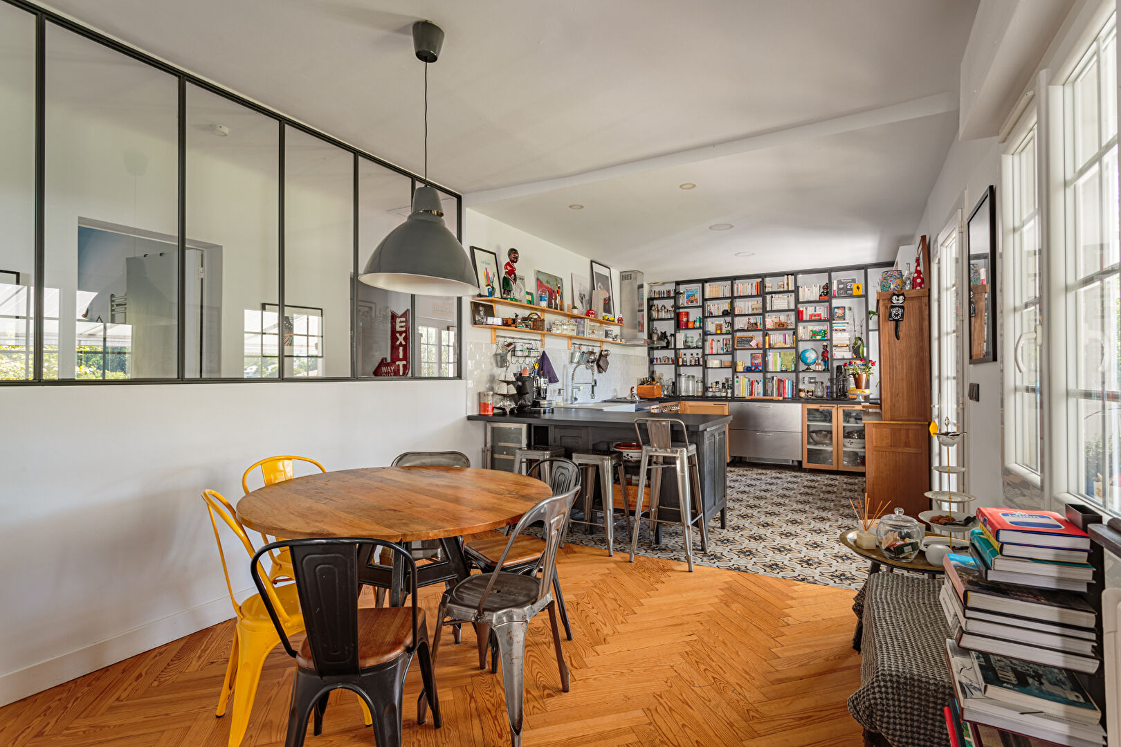 Située dans une impasse au calme, maison d'architecte de haut standing, exposée au Sud avec jardin quasiment plat. Très beaux volumes et DPE classé 'B'. La maison est composée : d'un très beau séjour / salon cathédrale de 52 m2 avec une cui...