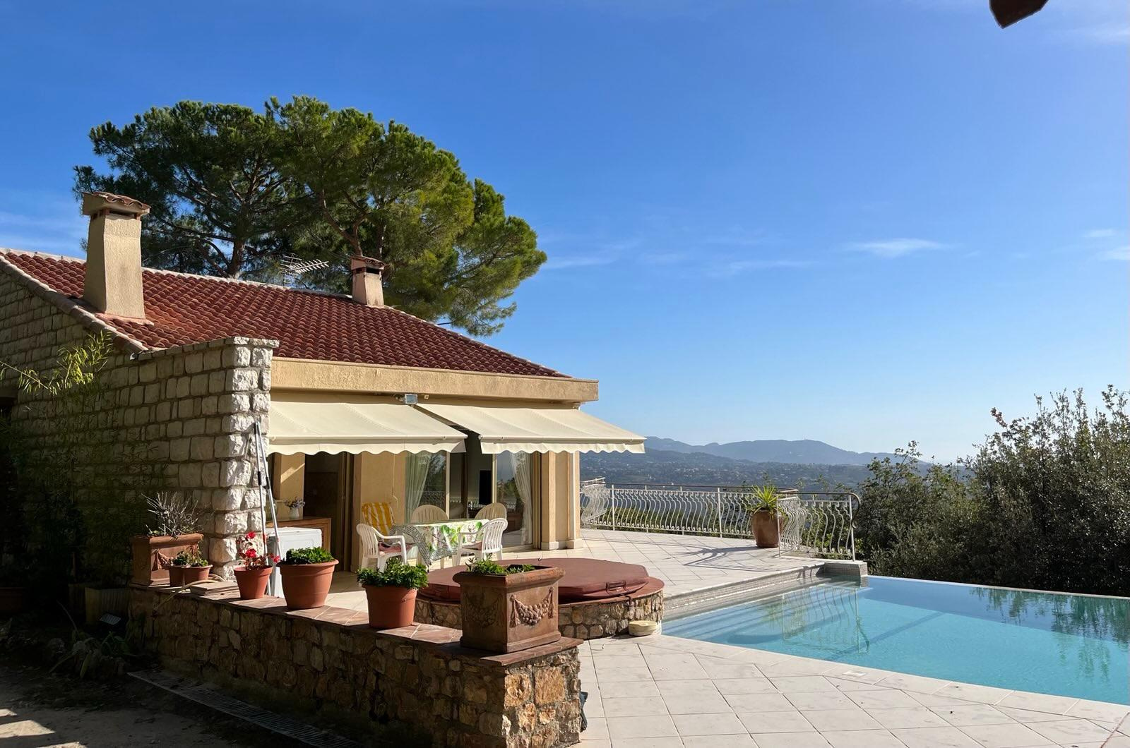 St Jeannet - Située aux portes du village, villa provençale de 175 m2 bénéficiant d'une vue panoramique sur toute la côte. Terrain de 1.871 m2 avec piscine, garage et mazet indépenant avec chambre et salle de douches. La villa se compose d'un beau sé...