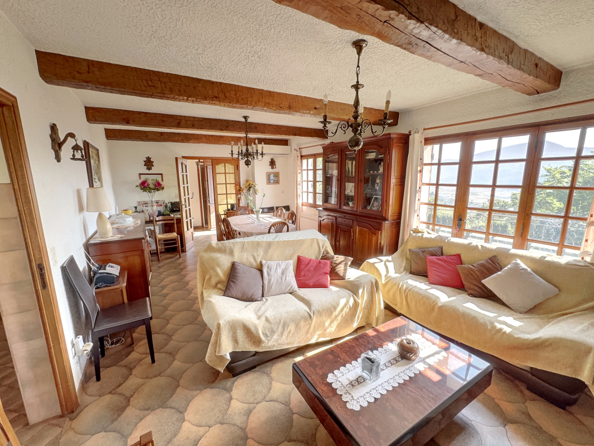 ST JEANNET, au pied du charmant village et en position dominante, très belle villa individuelle 5 pièces de 122m² édifiée sur un terrain de 2350m², PARFAIT ETAT, expo sud et ouest, VUE MER ET VILLAGE PANORAMIQUE, séjour avec cheminée, cuisine indépendante équi...