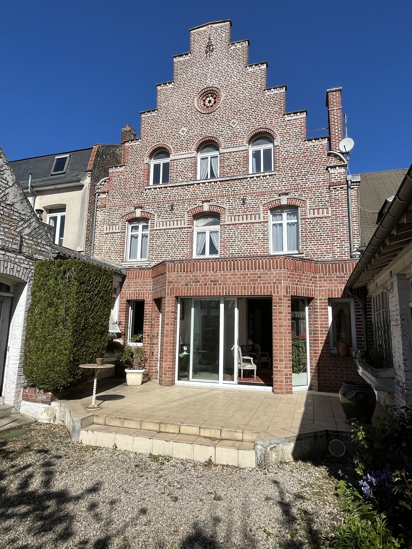 Debuisson Immobilier vous présente cette imposante maison bourgeoise de 1920 et sa façade de style gothique flamand, offrant 261 m2 de surface habitable.