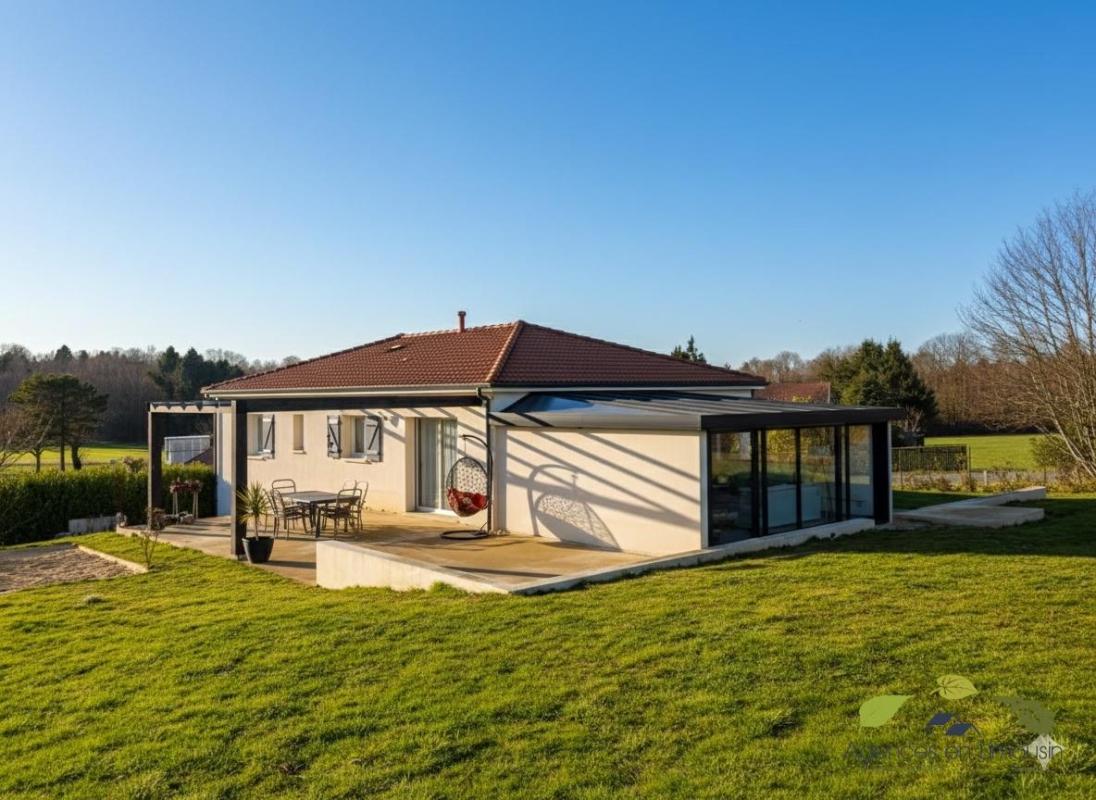 Rare et Exclusif, à 5 minutes du Centre ville de St Léonard de Noblat,30 minutes Limoges, dans petit hameau, confortable maison d'habitation de 126 m² de plain pied sur sous sol semi enterré de 2020, elle vous offre une spacieuse pièce de vie de 71 m² lum...