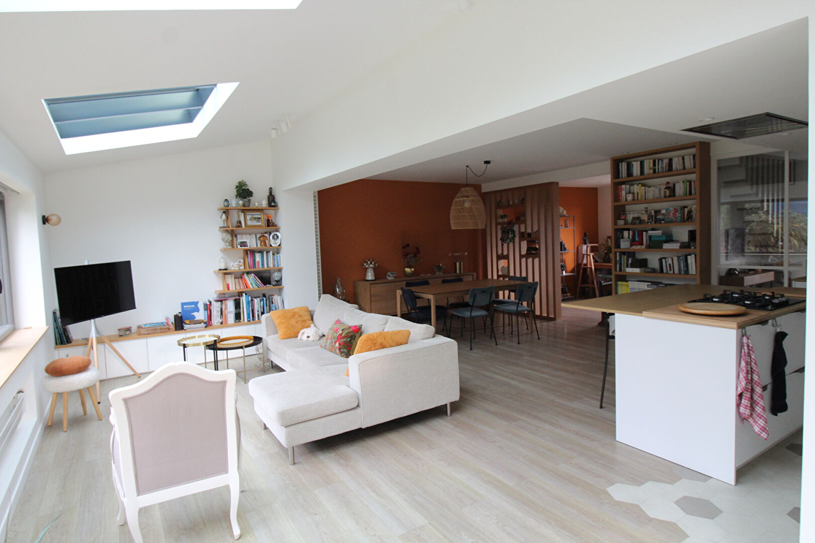 Mi ossature bois mi traditionnelle , cette maison est impressionnante par son intérieur construit de façon maison d 'architecte par rapport à son volume et ses formes.