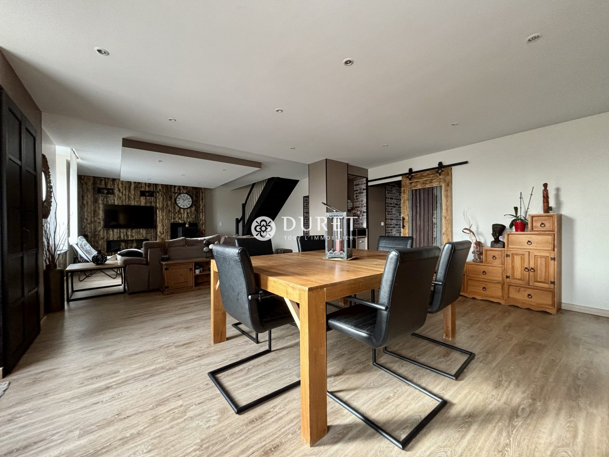 L'Agence DURET vous propose à l'achat cette longère, entièrement rénovée, comprenant au rez-de-chaussée : une grande pièce de vie avec poêle à granulés, une cuisine entièrement am...