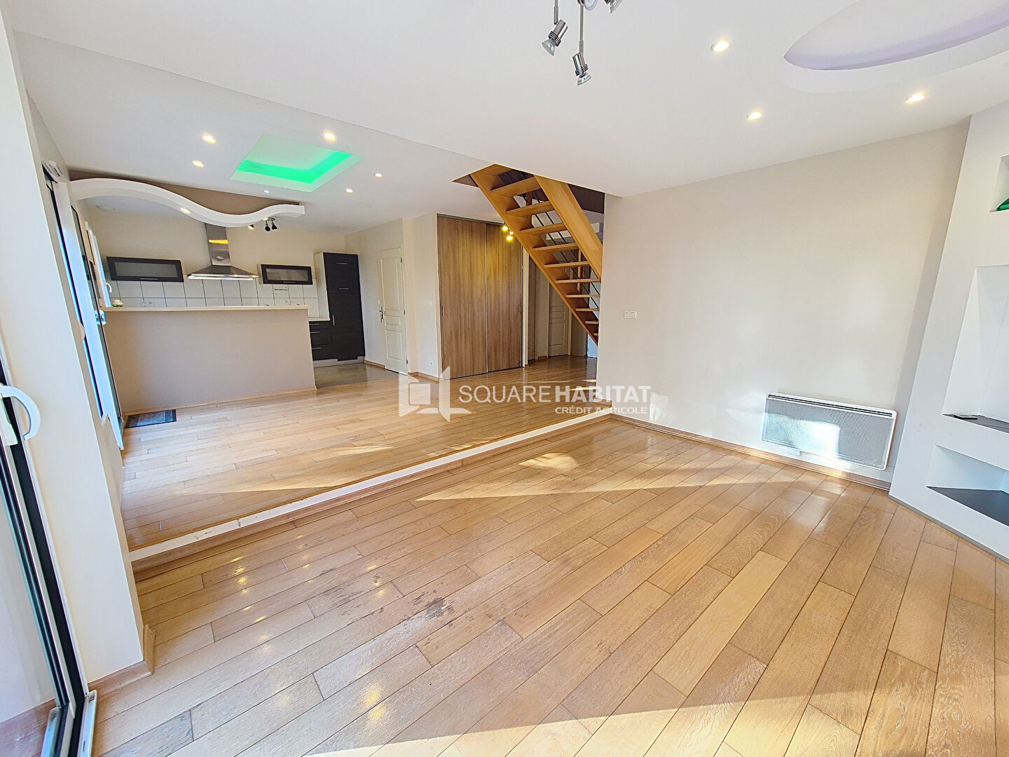 Elle se compose en rdc d'une cuisine et d'une pièce de vie agrémentée de placards...