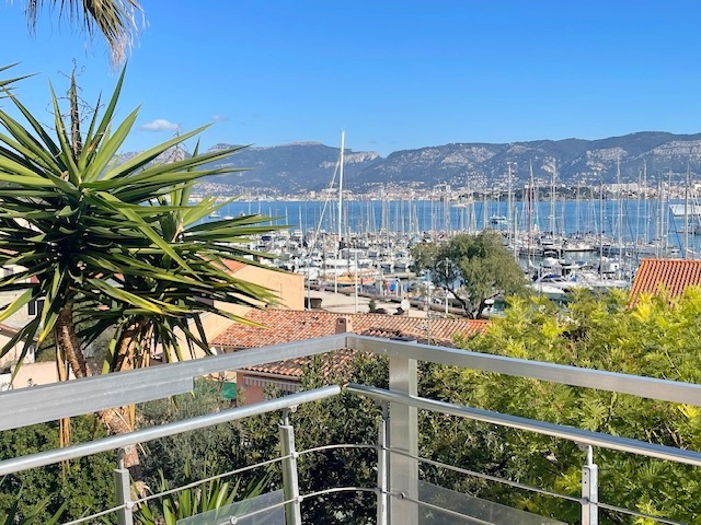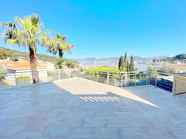Dominant la rade de Saint-Mandrier sur Mer et de Toulon à 180 o , au calme , belle propriété de standing de 140 m2 édifiée sur un terrain en restanques de 572 m2 .
