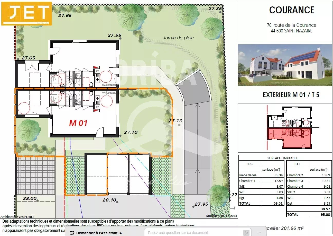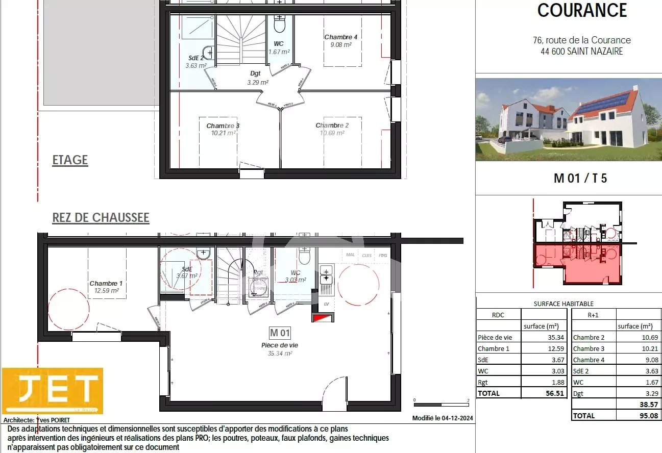 Maison VEFA secteur La Courance de 5 pièces sur un terrain de 361.85 m² A 550 mètres des Commerces et des plages composée: Une grande pièce à vivre avec cuisine ouverte équipée, une chambre, une salle de douche et un toilette.