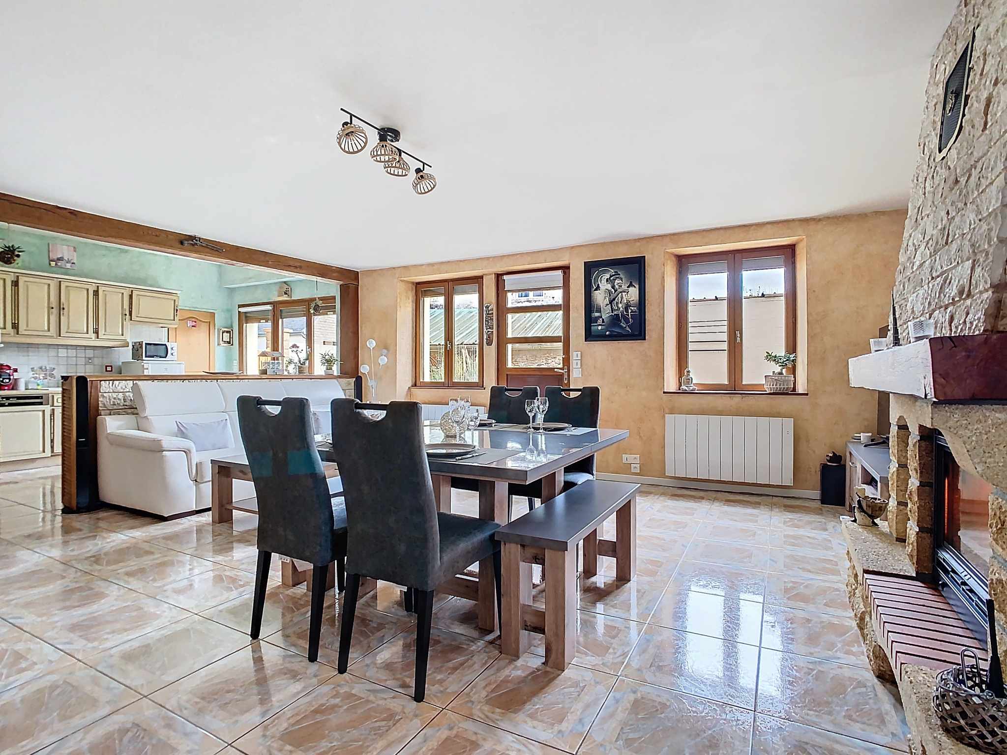 Première partie offrant une maison composée au rdc d'une cuisine équipée ouverte sur un beau séjour / salon avec cheminé...