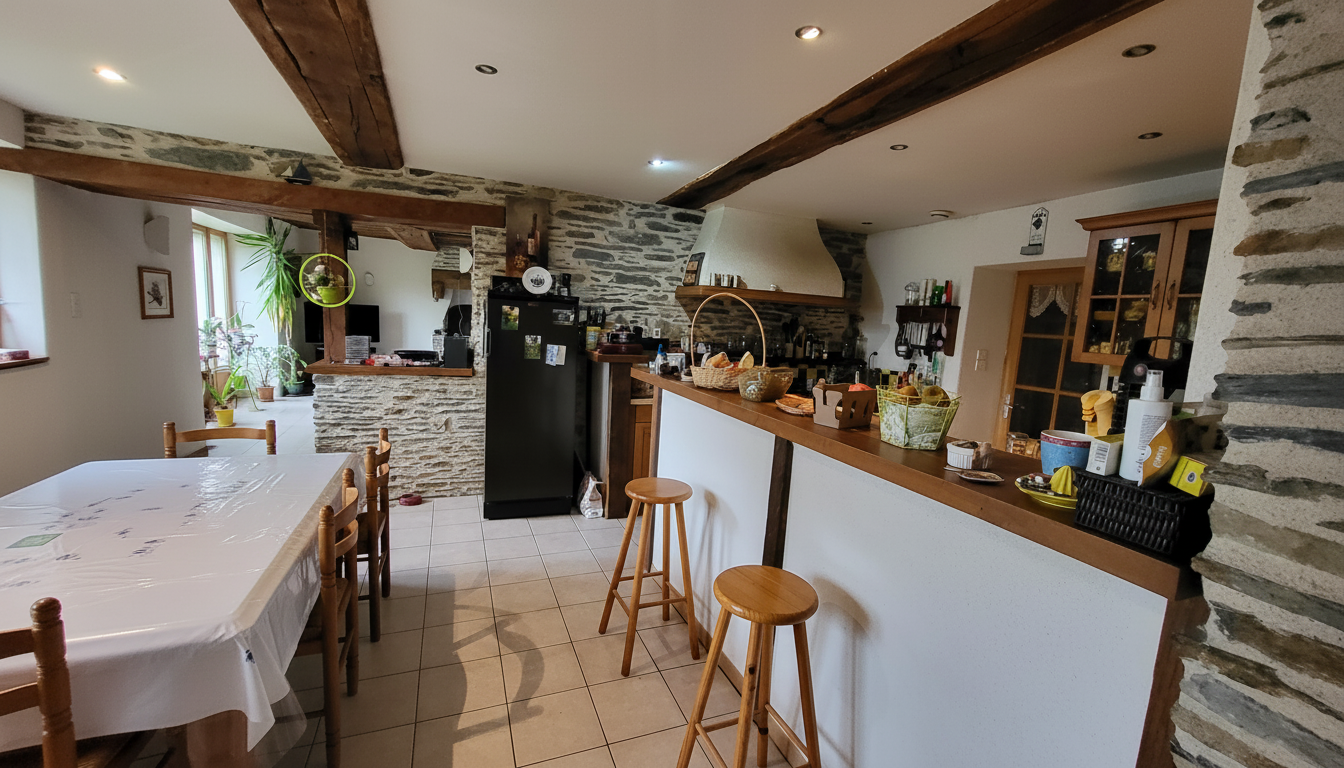 En hameau, au calme, maison en pierre, entièrement rénovée, à l'état neuf en 2014, où vous pourrez poser vos valises, lumineuse, fonctionnelle, adaptée PMR, elle se compose, en rez de chaussée, d'une pièce de vie avec cheminée insert à granules, cuis...
