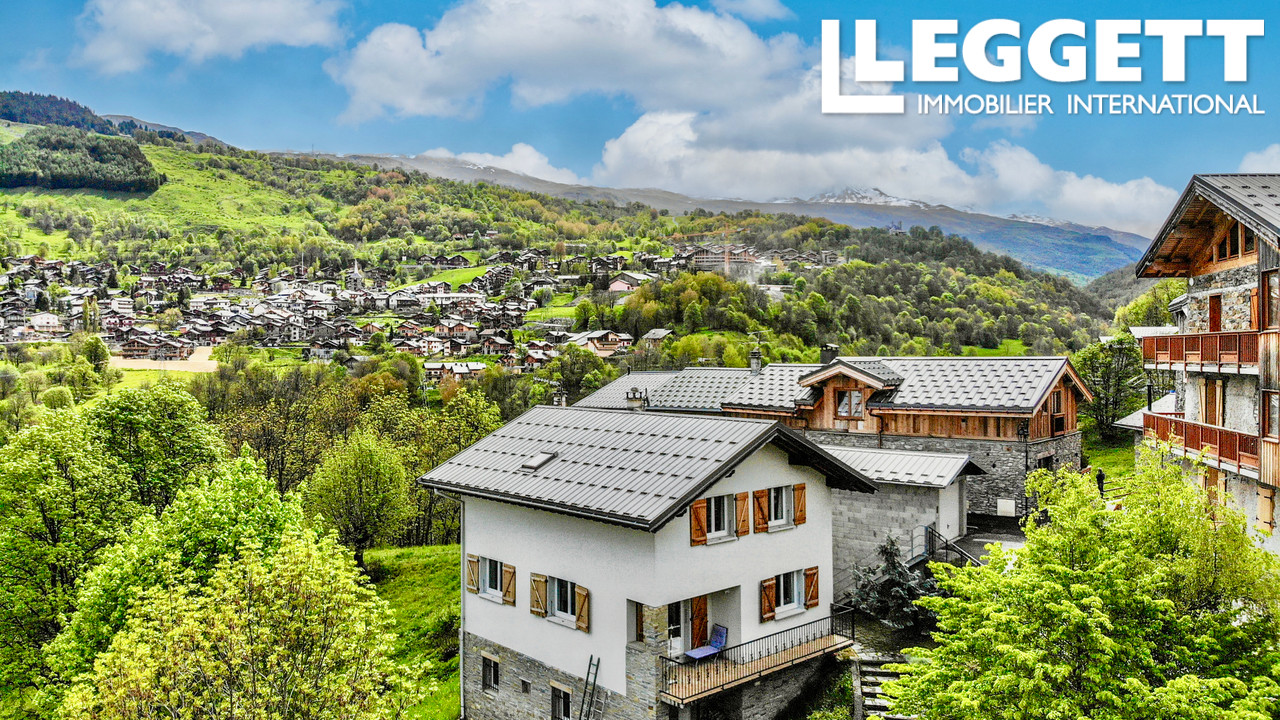 A35120EH73 - Situé à l'entrée de St Martin de Belleville, dans le quartier Le Hameau des Chapelles, ce chalet mitoyen s'étend sur trois étages et dispose d'une surface de 139 m² (115m2 Loi Carrez), de cinq chambres, d'une salle de jeux/télé...
