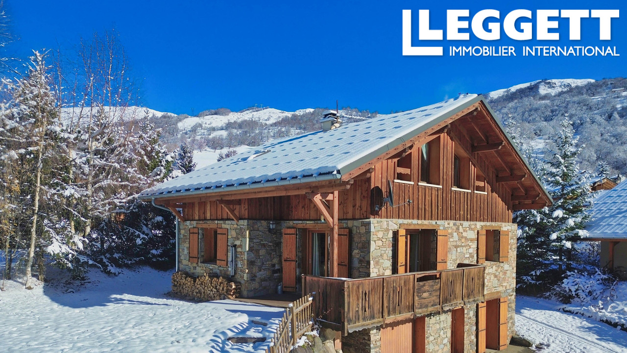 A40823SPA73 - Perché au sommet du village de ski appelé Le Bettex, ce chalet offre plusieurs possibilités à l'acheteur : Il est actuellement divisé en deux logements distincts : un appartement indépendant et une propriété de style chalet comprenant trois ...