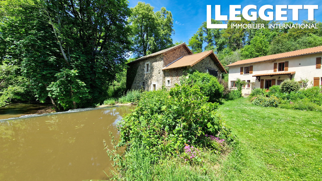 A29905TSM16 - Situé au bout d'un chemin dans un endroit très privé au bord de la rivière. Propriété exceptionnelle pour les amoureux de la nature ou pour quelqu'un qui souhaite tirer un revenu d'une propriété. 50 km de l'aéroport de Limoges...