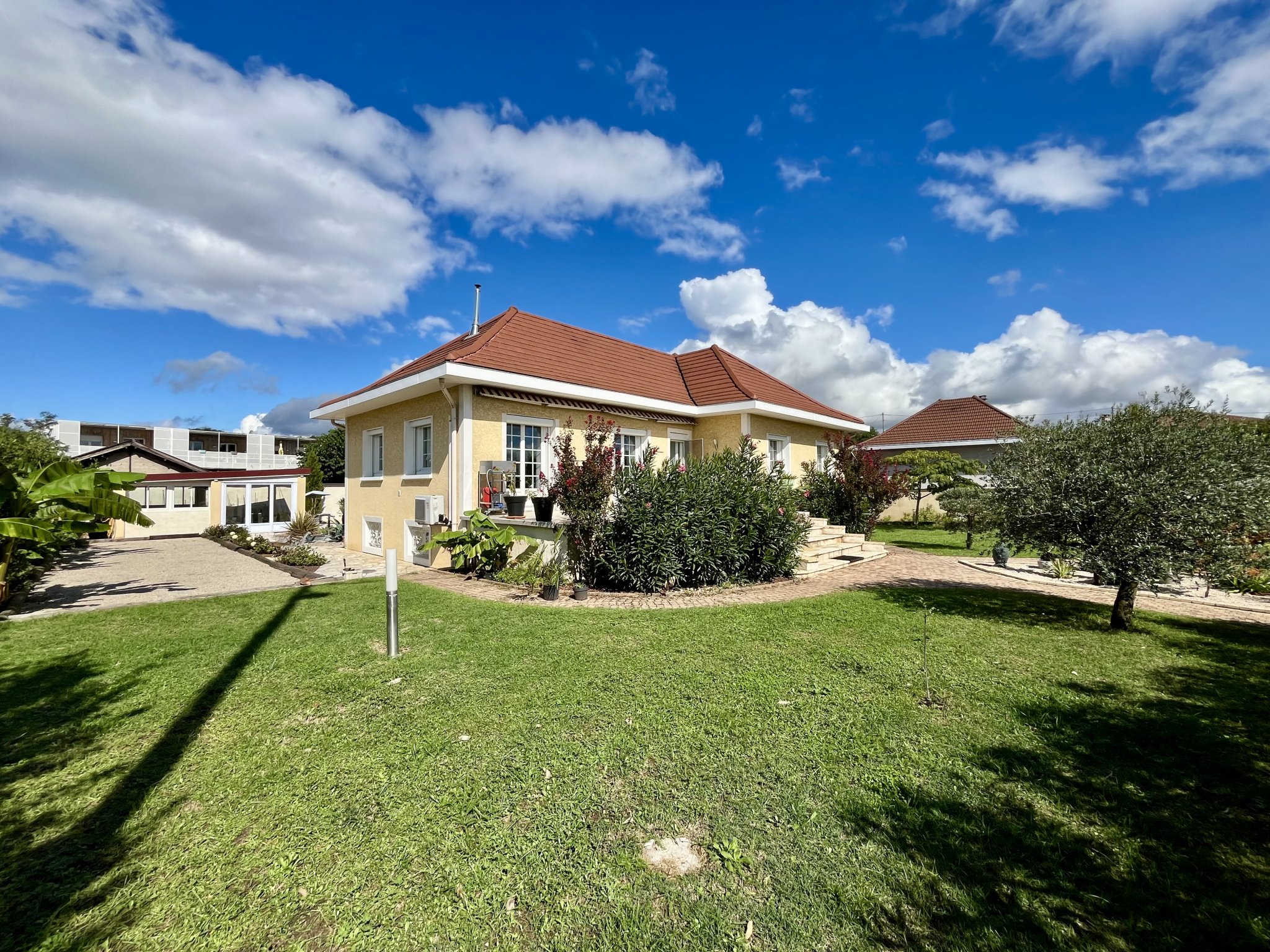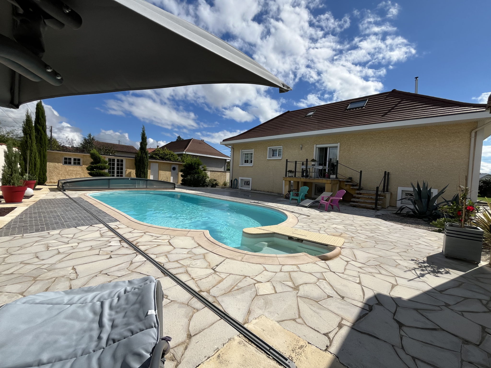 Superbe villa parfaitement entretenue, offrant une cuisine équipée ouverte sur terrasse, un salon-salle à manger lumineux avec poêle à bois, 4 chambres dont une suite parentale de 40 m2 avec bureau, dressing et salle d'eau priva...