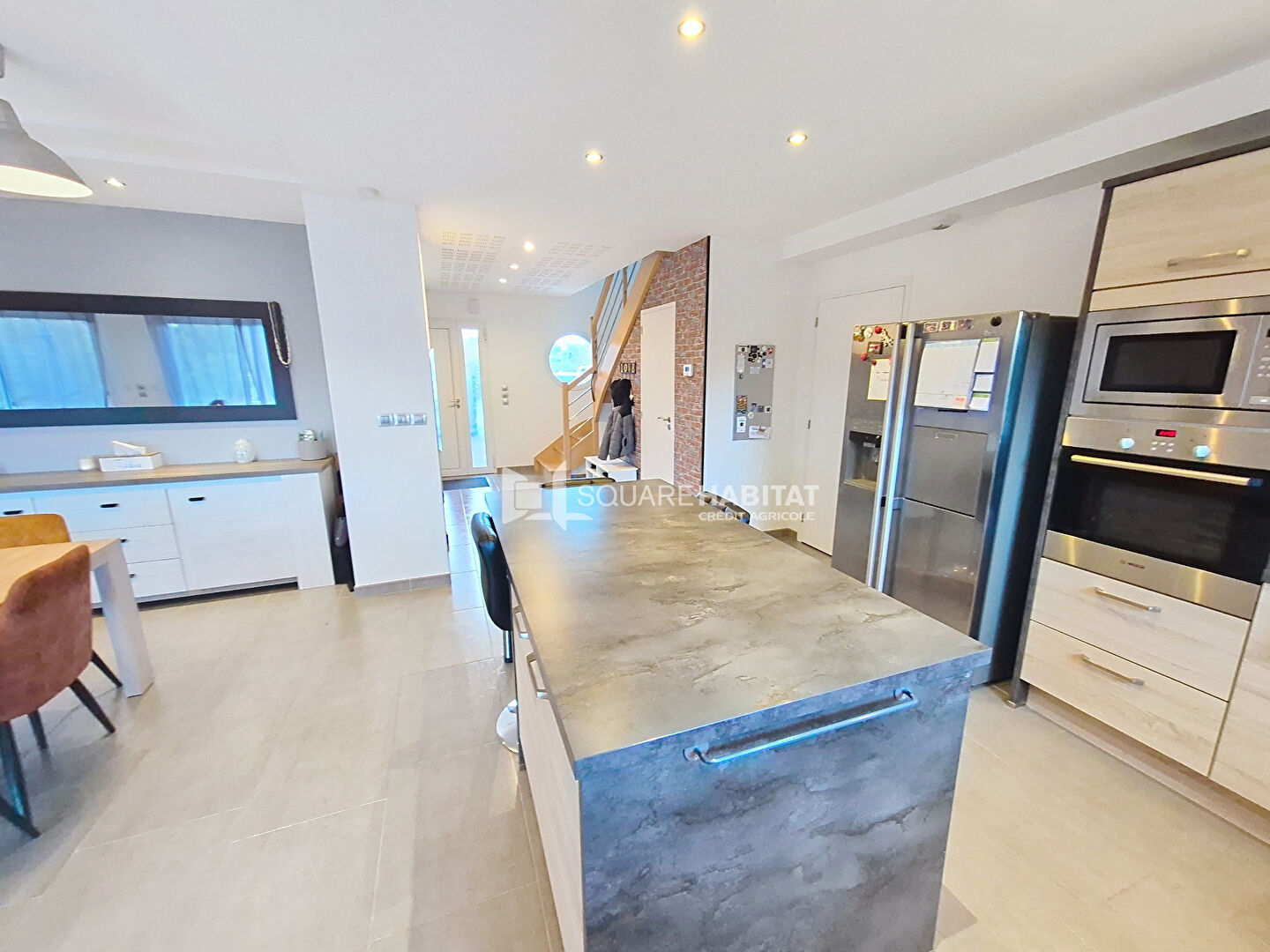 Au rez-de-chaussée, une entrée ouvre sur un salon-séjour baigné de lumière avec cuisine ouverte, équipée et aménagée. Cet es...