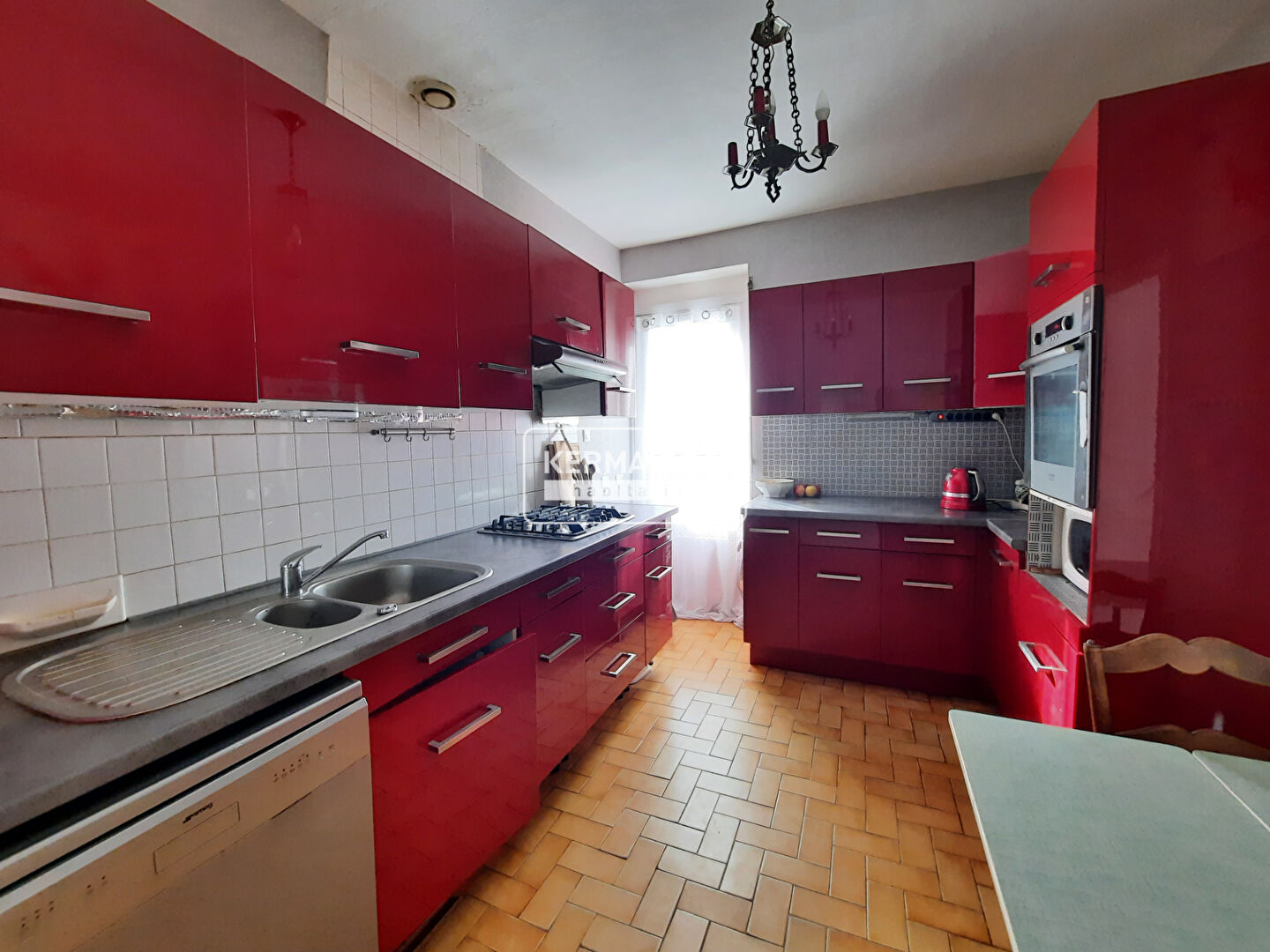Maison de ville entièrement rénovée et très lumineuse comprenant 3 chambres, séjour sur parquet, cuisine aménagée et équipée, salle de bains, toilettes, buanderie. Grand garage et cour.
