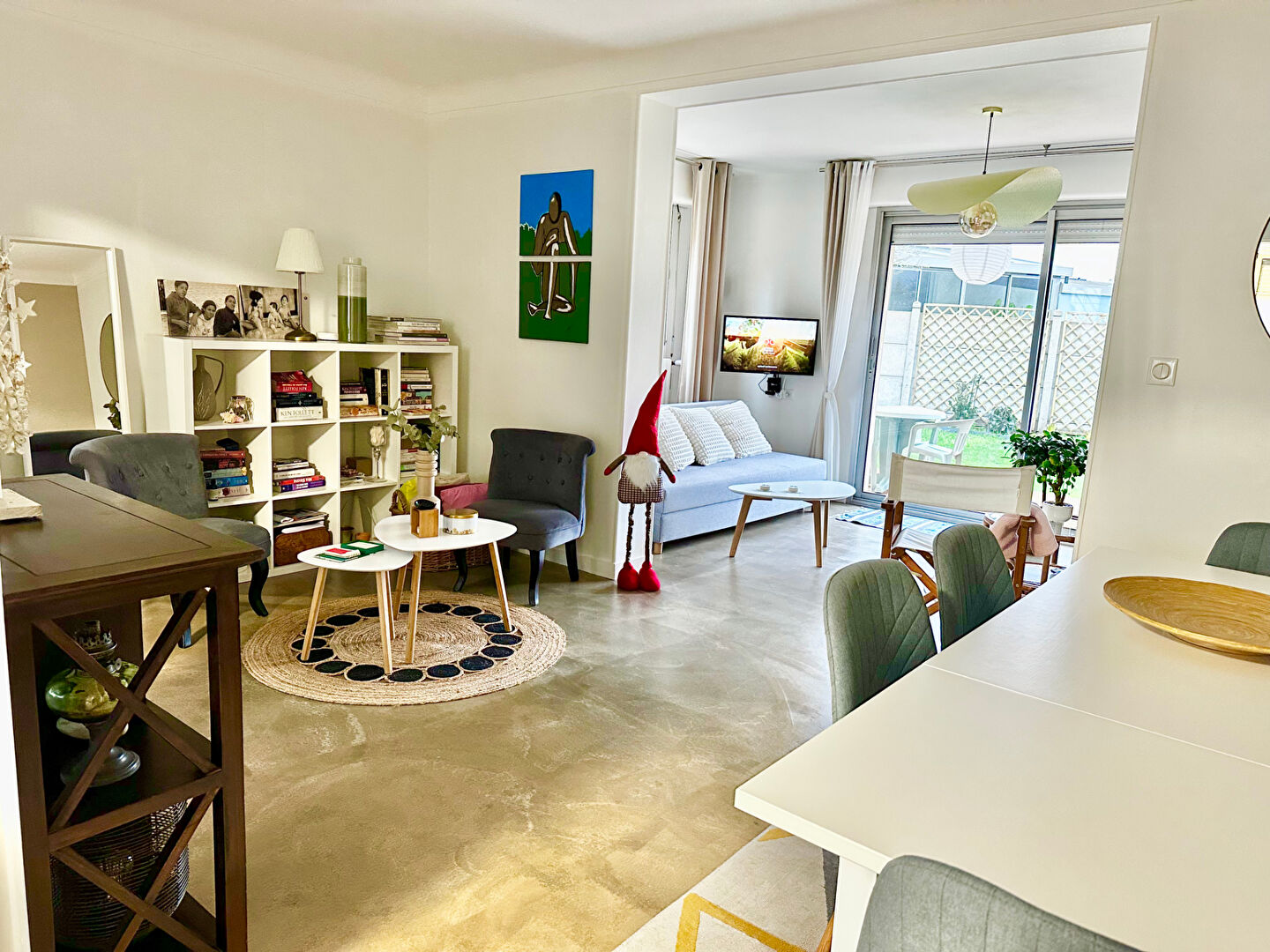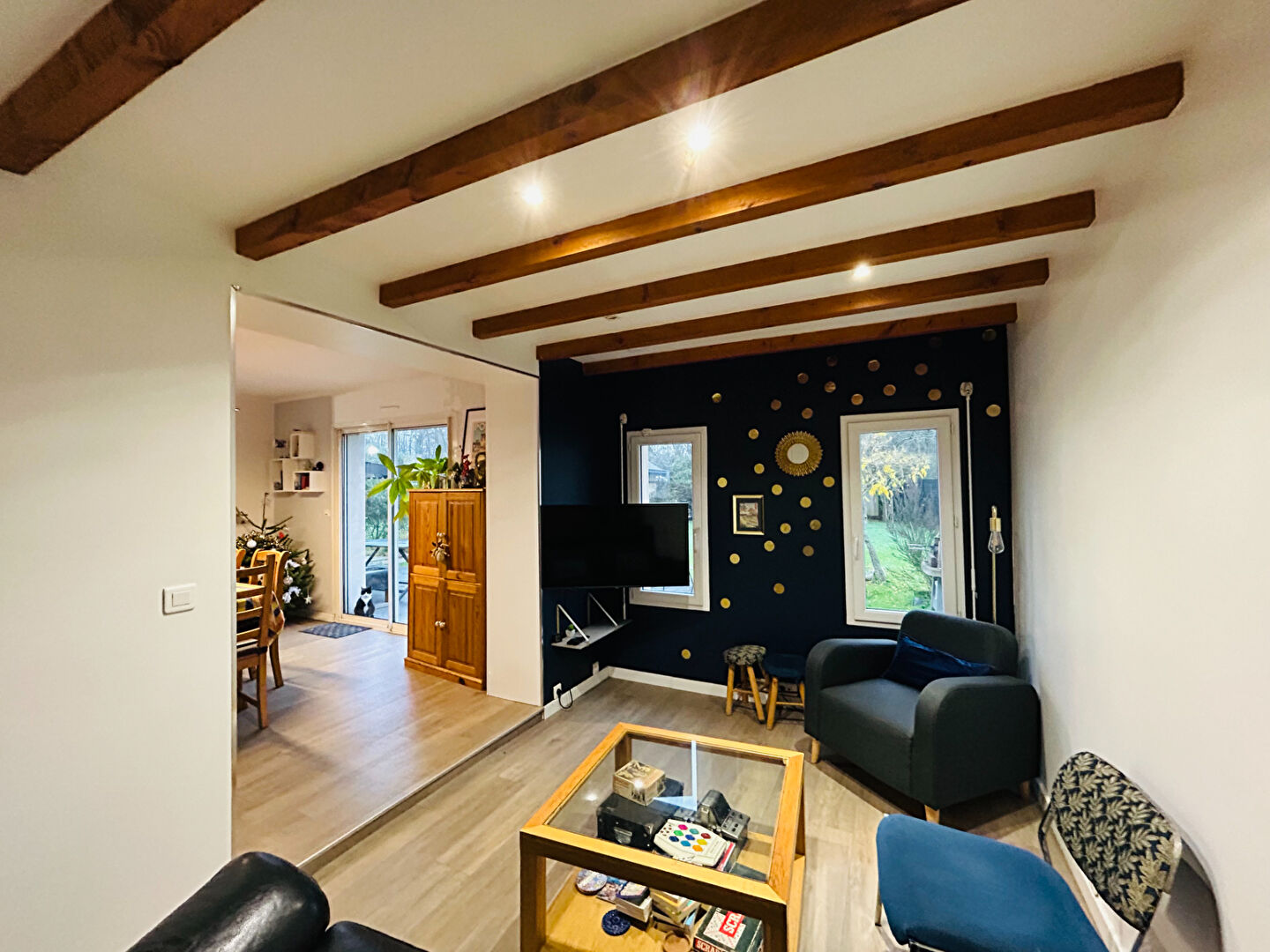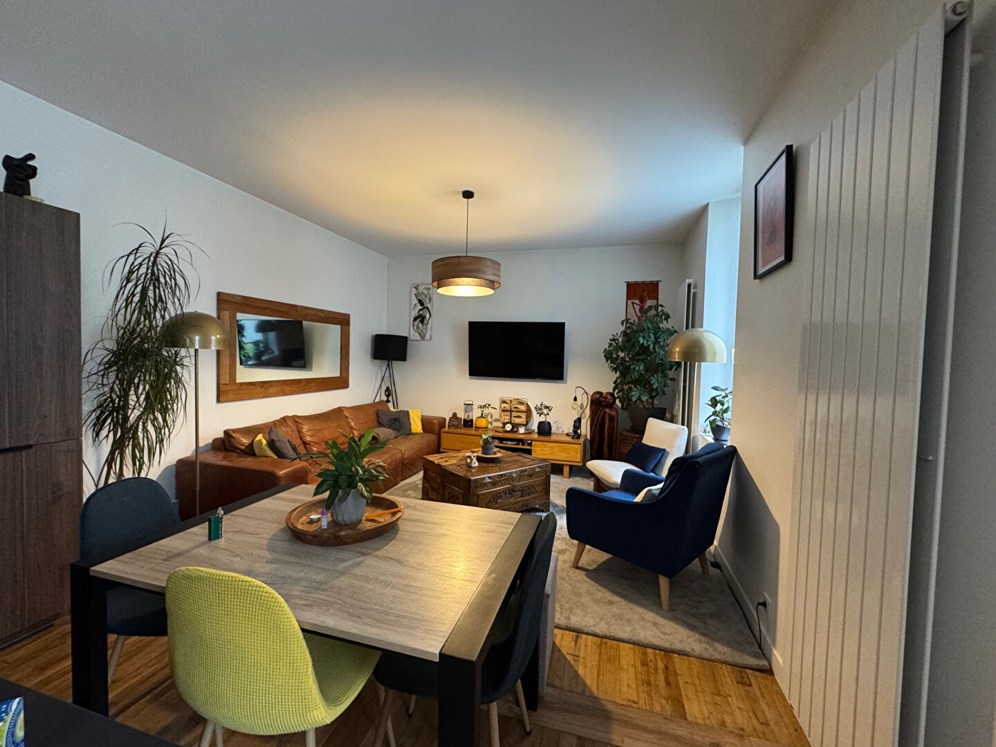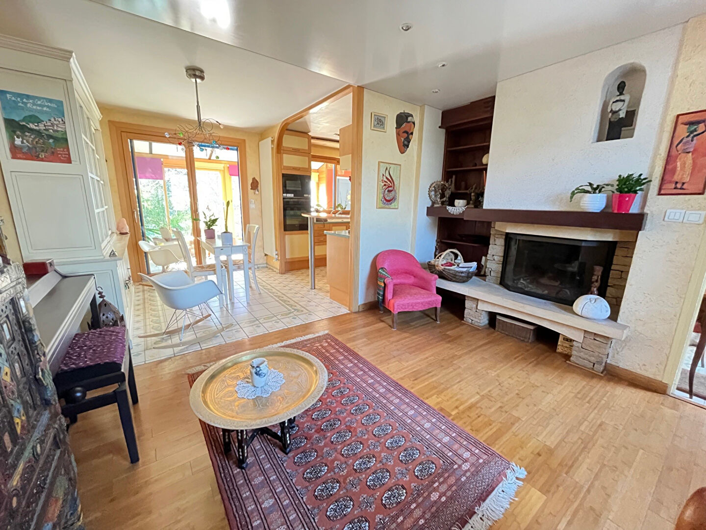 Une belle pièce de vie lumineuse et traversante offrant un coin salon/ séjour, une salle à mang...