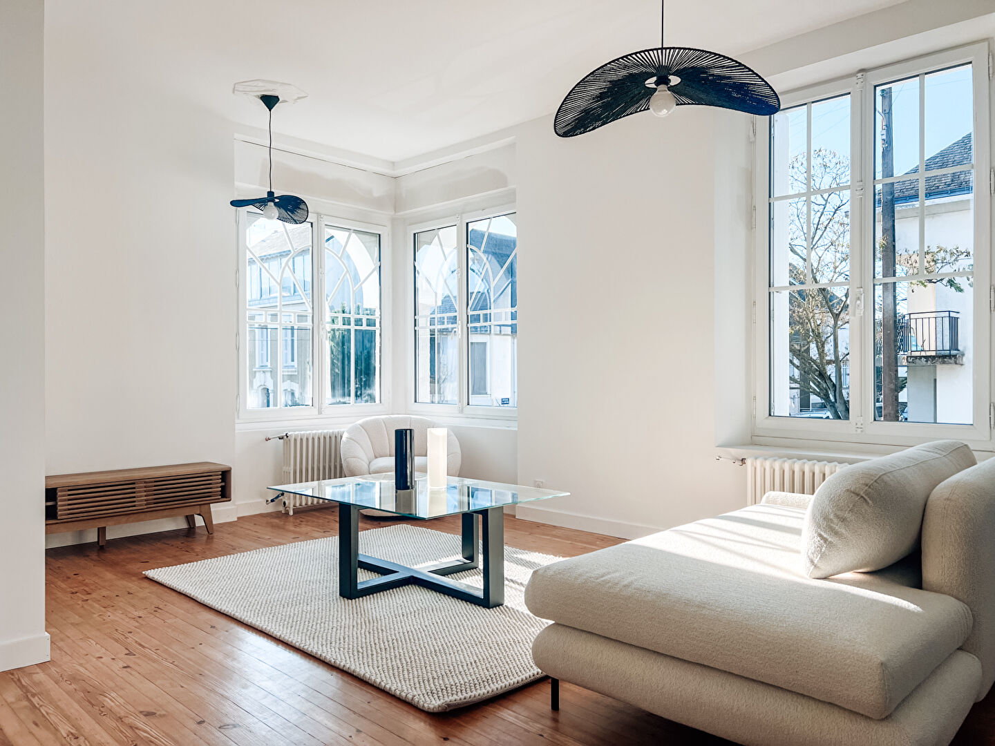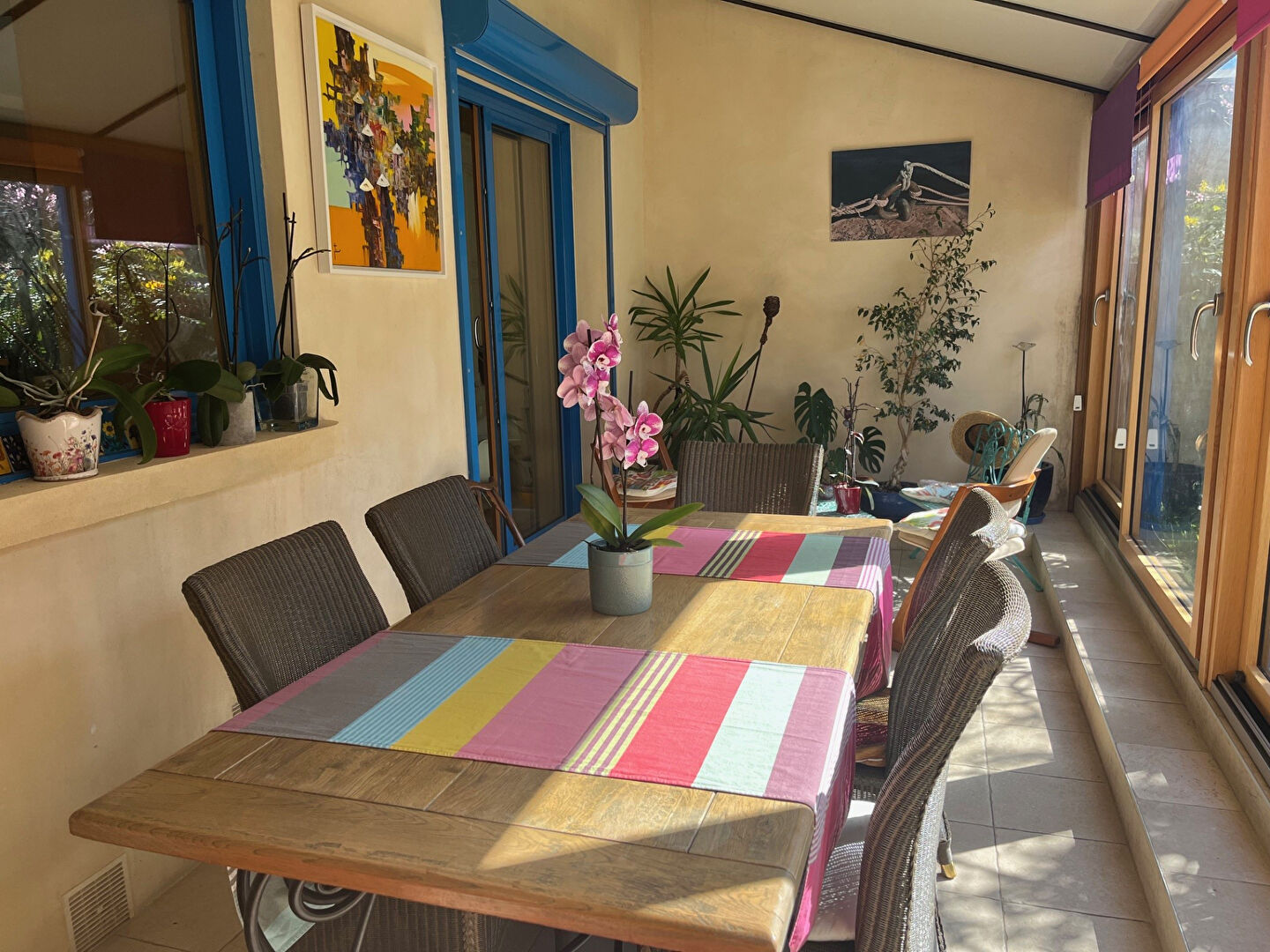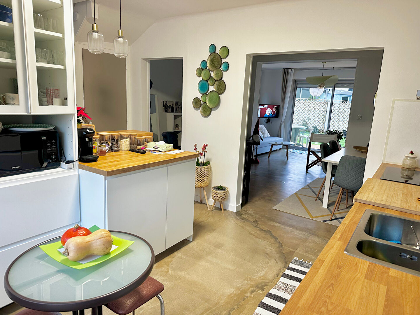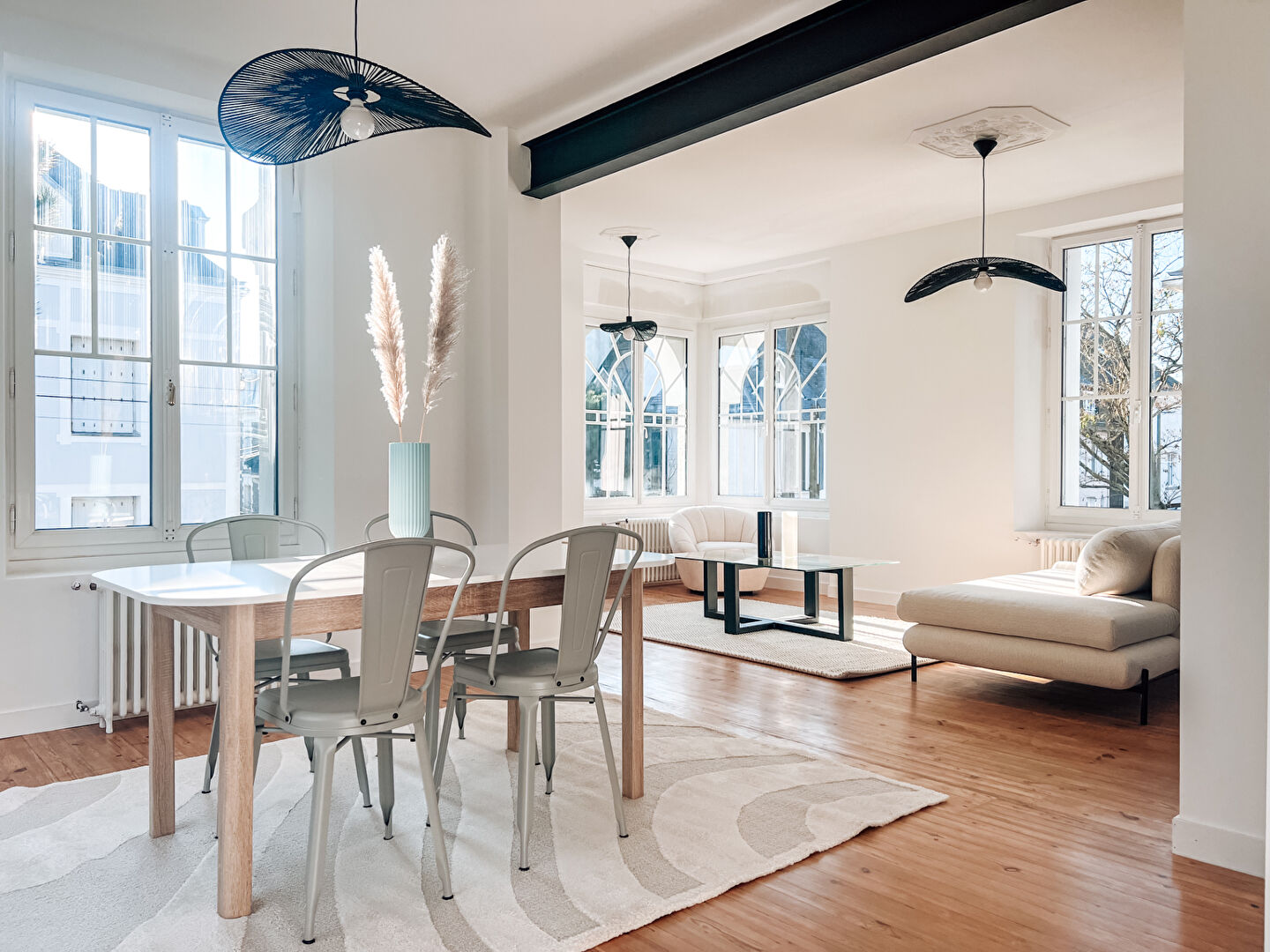 Une belle pièce de vie lumineuse et traversante offrant un coin salon/ séjour, une salle à mang...