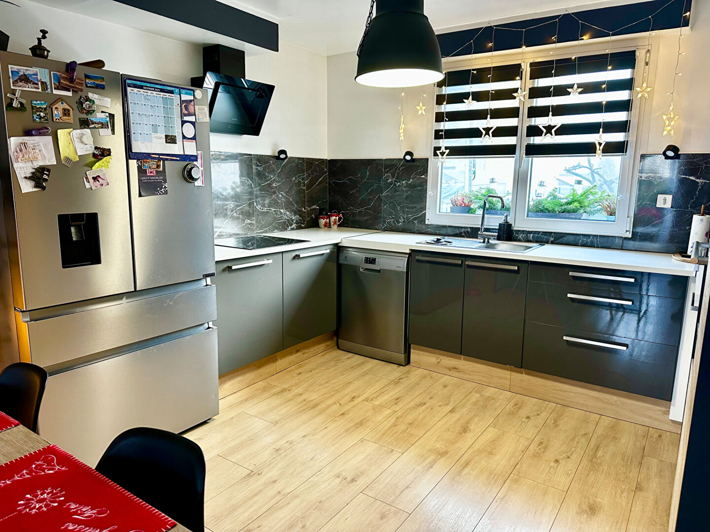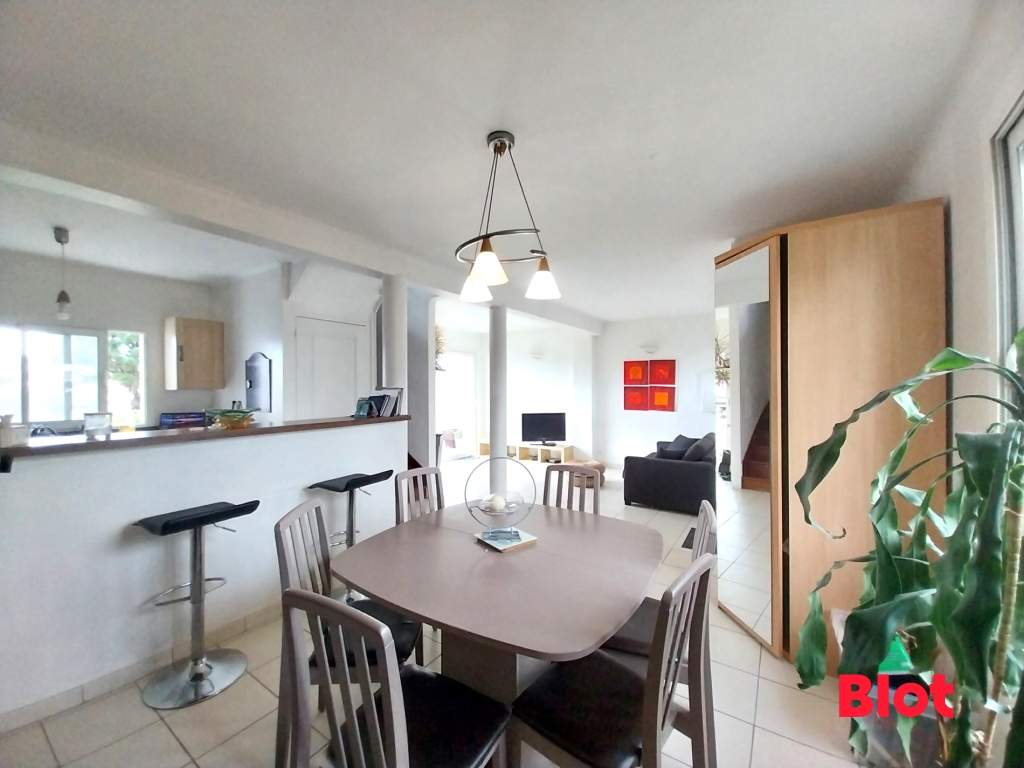 Maison d'environ 109 m² non mitoyenne de 2012 sur terrain de 347m² clos comprenant: entrée avec placard, wc, salon -séjour avec cuisine aménagée. Etage: mezzanine, 3 chambres, salle d'eau avec wc, chambre avec salle d'eau privative et wc. Garage...
