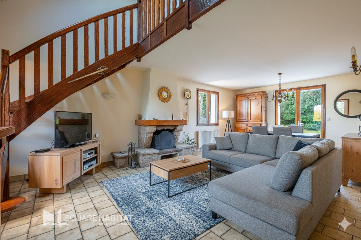 D' une surface de 132 m² sur une belle parcelle de 2300 m², la maison dispose de 3 chambres, dont une suite parentale située au rez-de-chaussée.