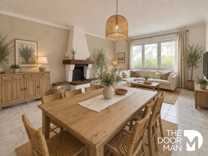 Dès l'entrée, un salon chaleureux avec poêle à bois s'ouvre sur une cuisine aménagée et équipée, offrant un espace de vie convivial idé...