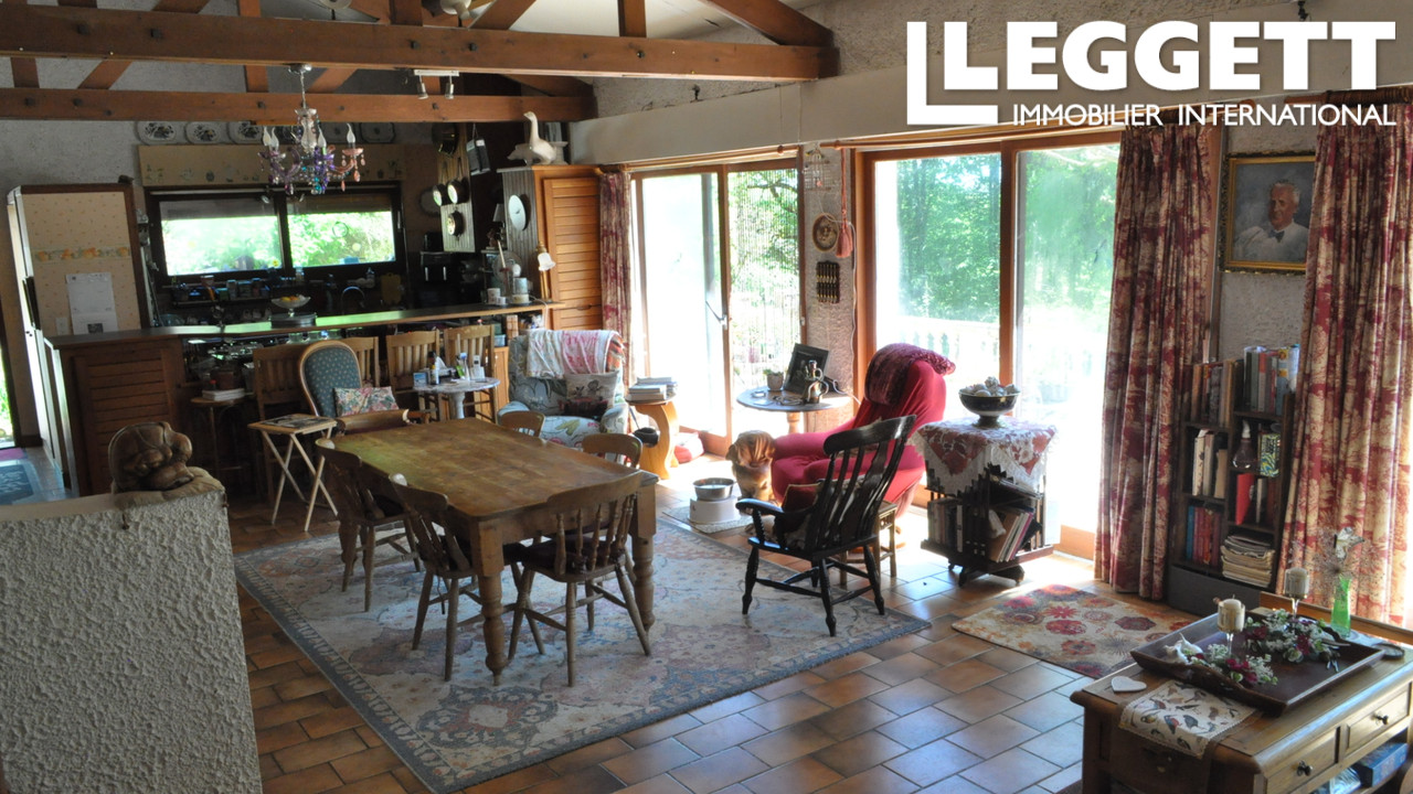 A34692LAL24 - Cette belle maison se trouve dans un cadre tranquille, entourée d'un grand jardin de 4000 m², avec un double garage et une piscine. La maison est dite décloisonnée et beaucoup de bois a été utilisé dans la construction. Idéalement située ent...