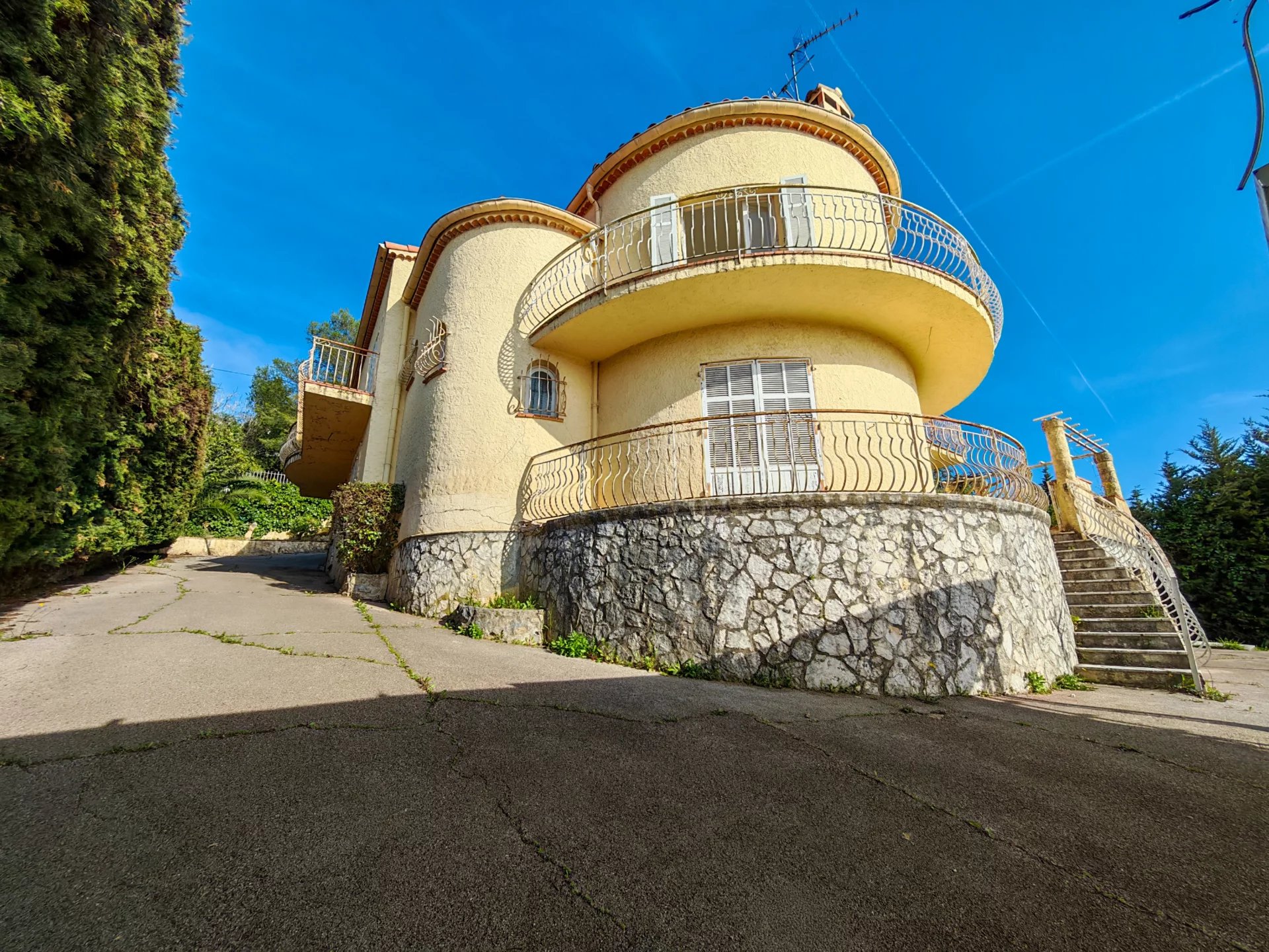 Dans un secteur recherché de Saint Paul de Vence, à 25 minutes de l'aéroport, villa sur trois niveaux avec beau jardin complanté dans un environnement très calme et avec vues dégagées.