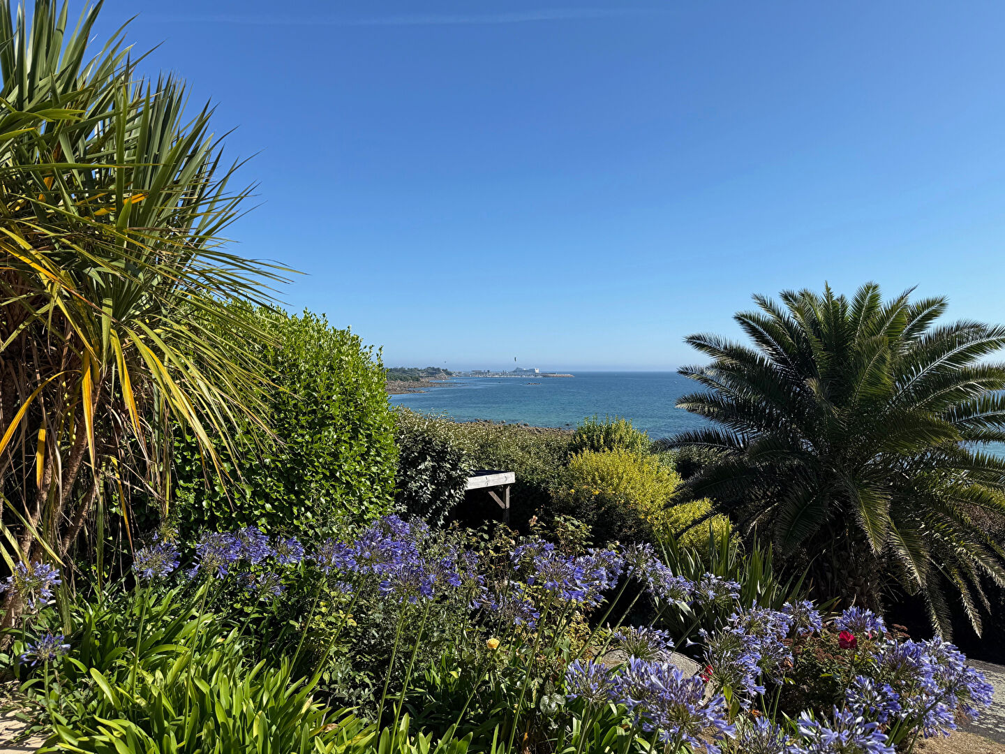 Saint Pol de Léon : Vue mer imprenable, maison contemporaine permettant de vivre de plain pied composée d'une entrée, salon-séjour de 76 m² env. avec cuisine A et E ouverte, accès terrasse et jardin, 4 ch dont 1 au RDC , 2 salles d'eau , 2 WC, buand...