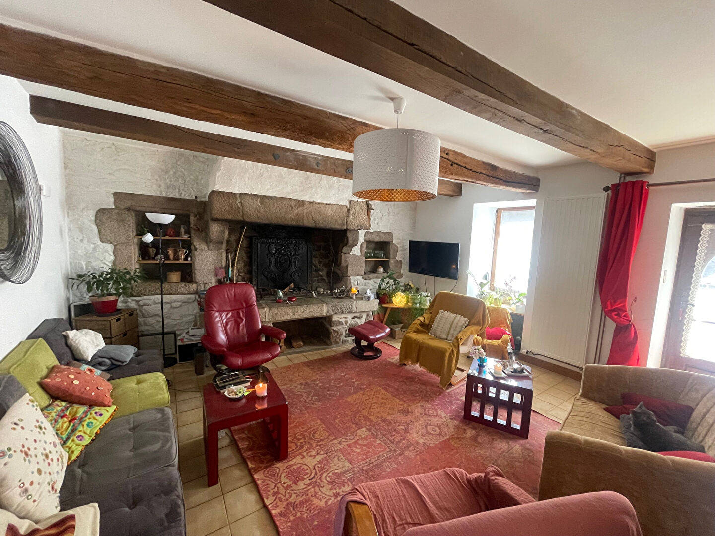 SAINT POL DE LEON, centre ville, maison de charme en pierres apparentes composée d'un salon-séjour avec cheminée, cuisine aménagée, à l'étage 2 ch, SDB et WC, deux petites chambres sous mansardes. Cour sur l'arrière.