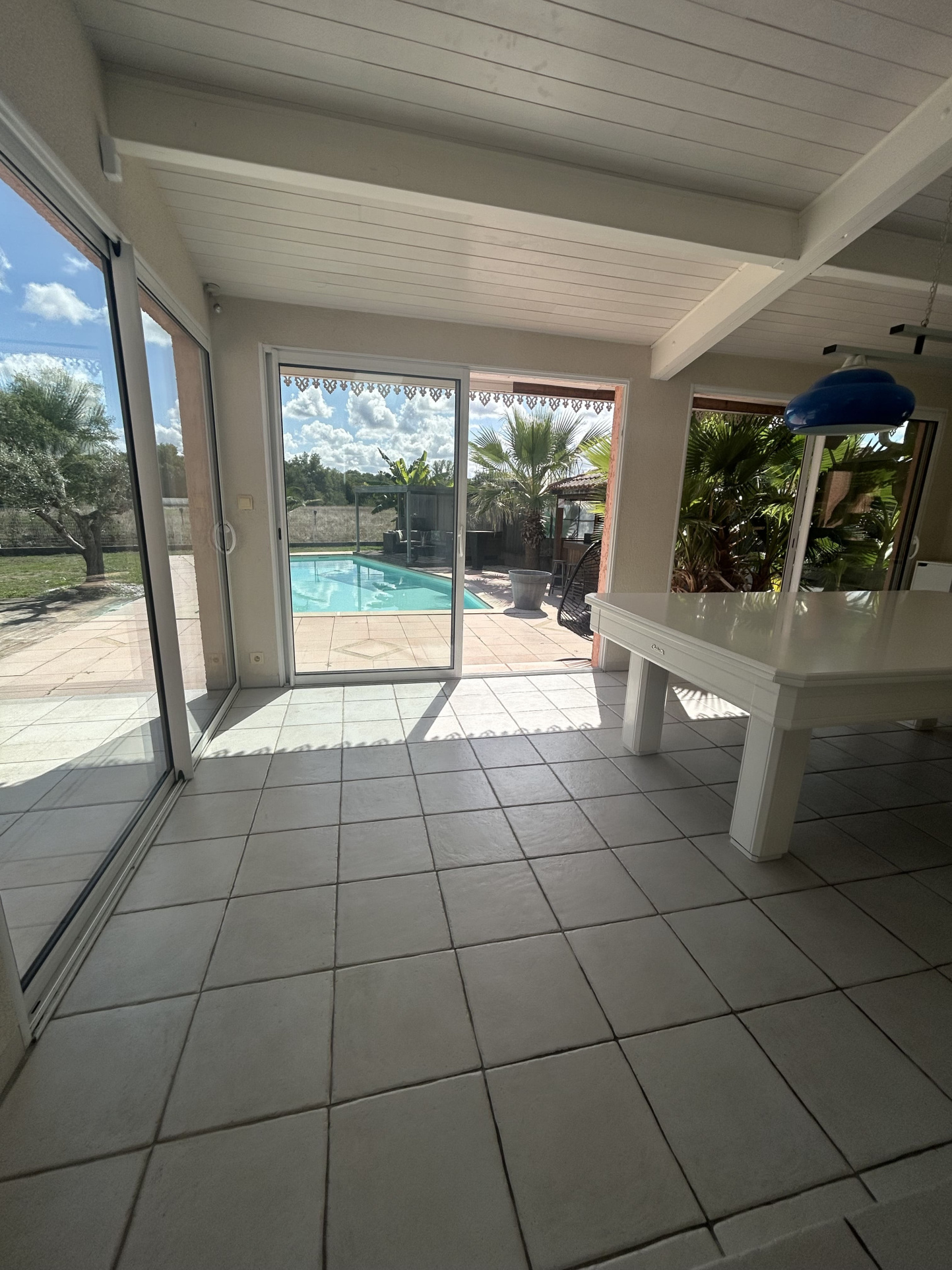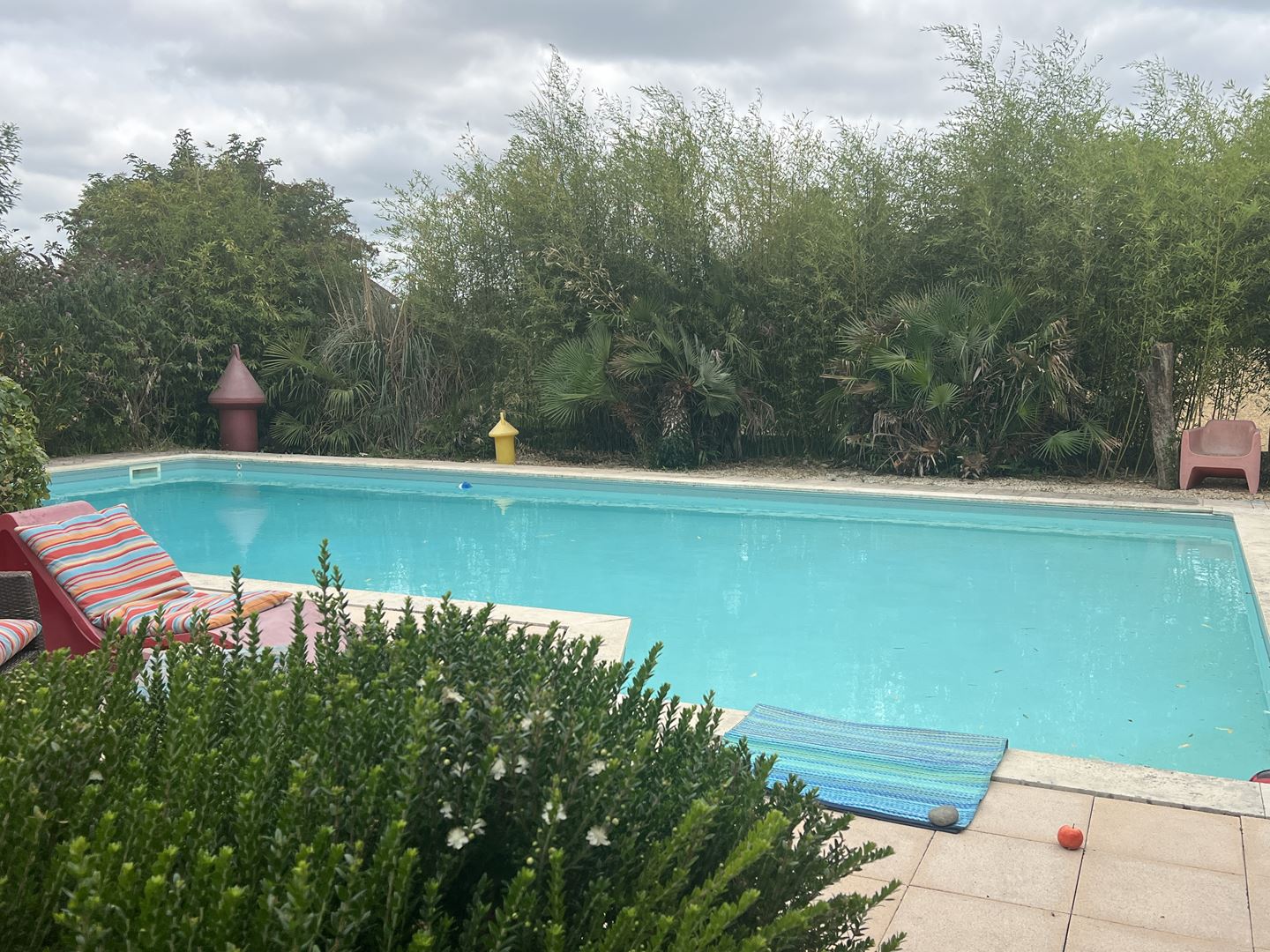 Proche des commerces , d'un arret de bus et des axes pour rejoindre Bordeaux et Libourne , une maison en pierre rénové sur une belle parcelle arborée avec piscine careport et garage