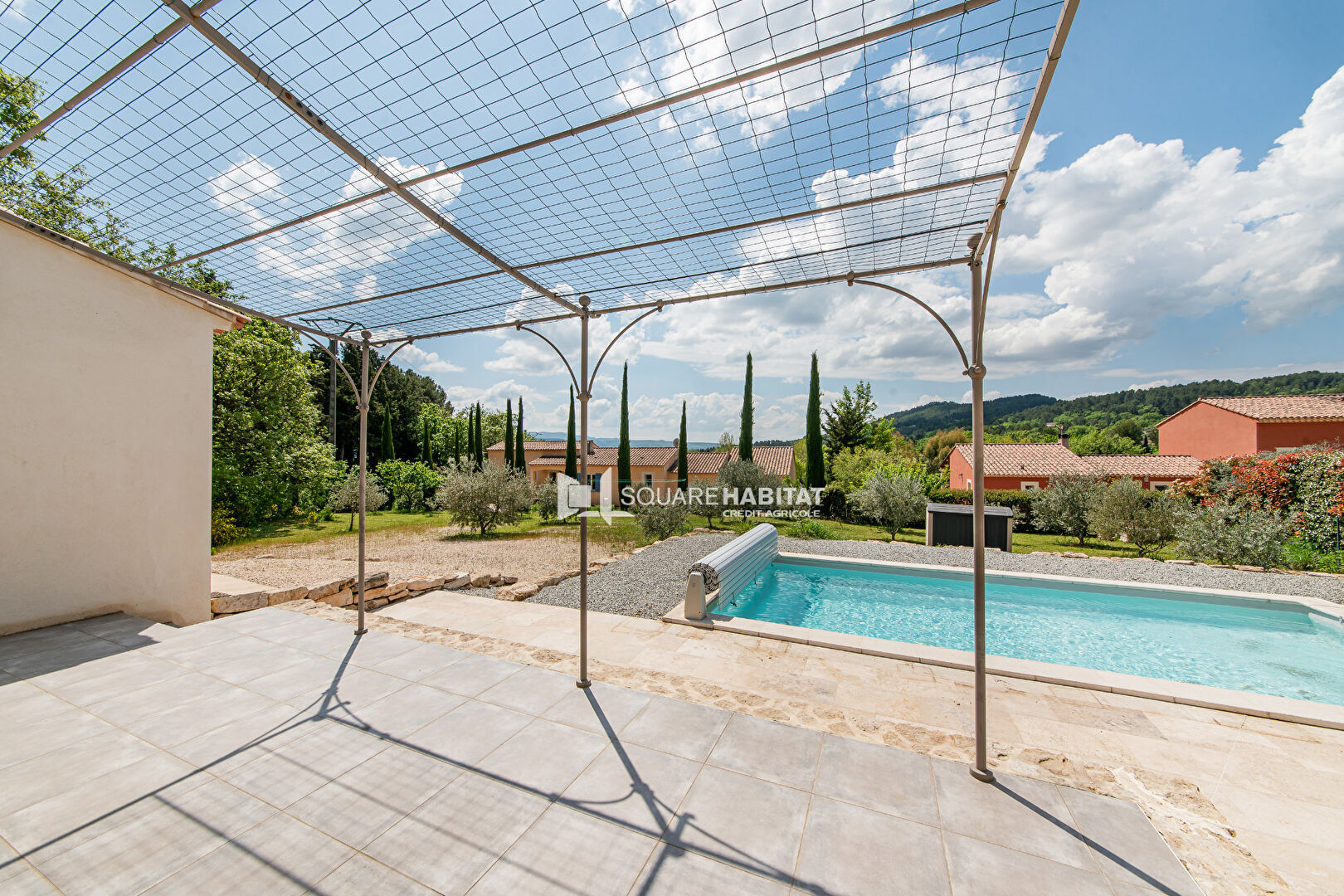 A40088EKO84 - Spacieuse maison récente et lumineuse (2002), orientée plein sud, sur un terrain clos et très calme de 3 000 m², avec 4 terrasses et une grande piscine équipée d'un dôme pour prolonger la saison.